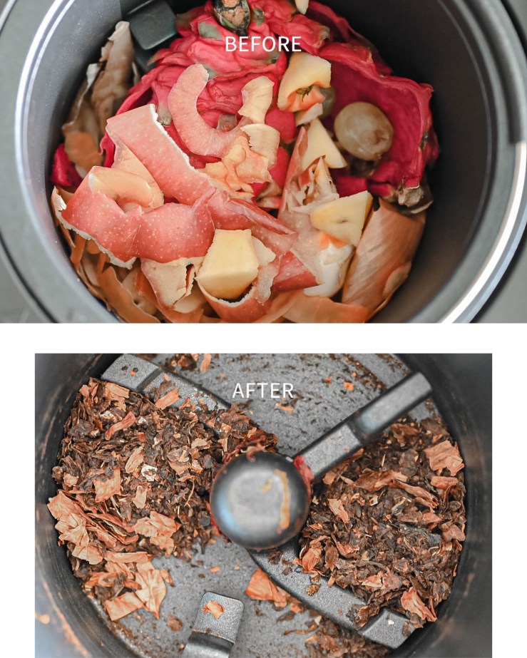 討厭的濕廚餘轉變為乾燥的碎末,整體減少90%體積,廚餘整理起來好清爽乾淨,倒入垃圾桶再也不怕臭臭、長蟲或佔空間。