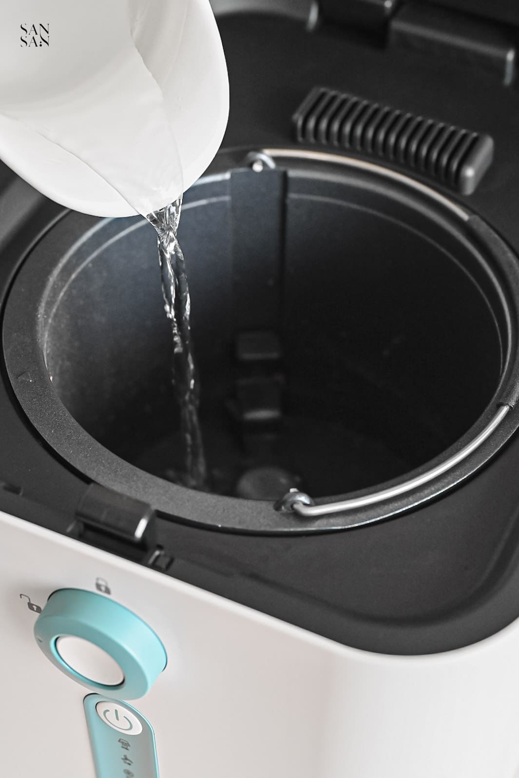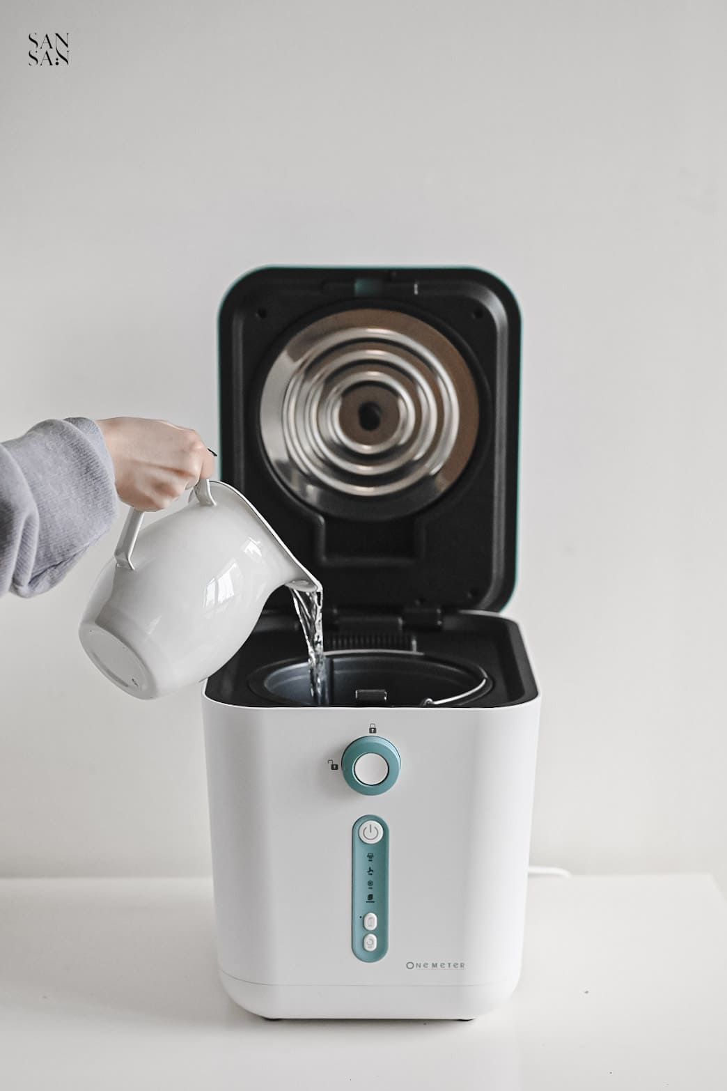 【one-meter 智能乾燥廚餘機】清洗時可以倒入半桶水加一點點洗碗精,再按清潔鍵。