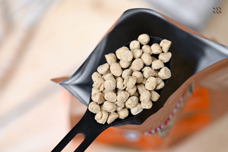 顆粒較以往給Eko吃的還要大顆一些,好處是可以增加貓咪咀嚼,並慢慢磨掉牙齒上的牙結石!