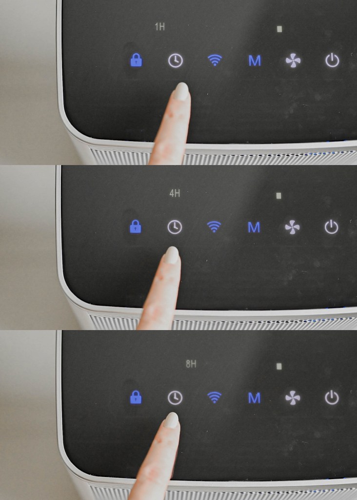 觸控面板由左至右分別為:童鎖、定時、WIFI、模式、風速、電源開關