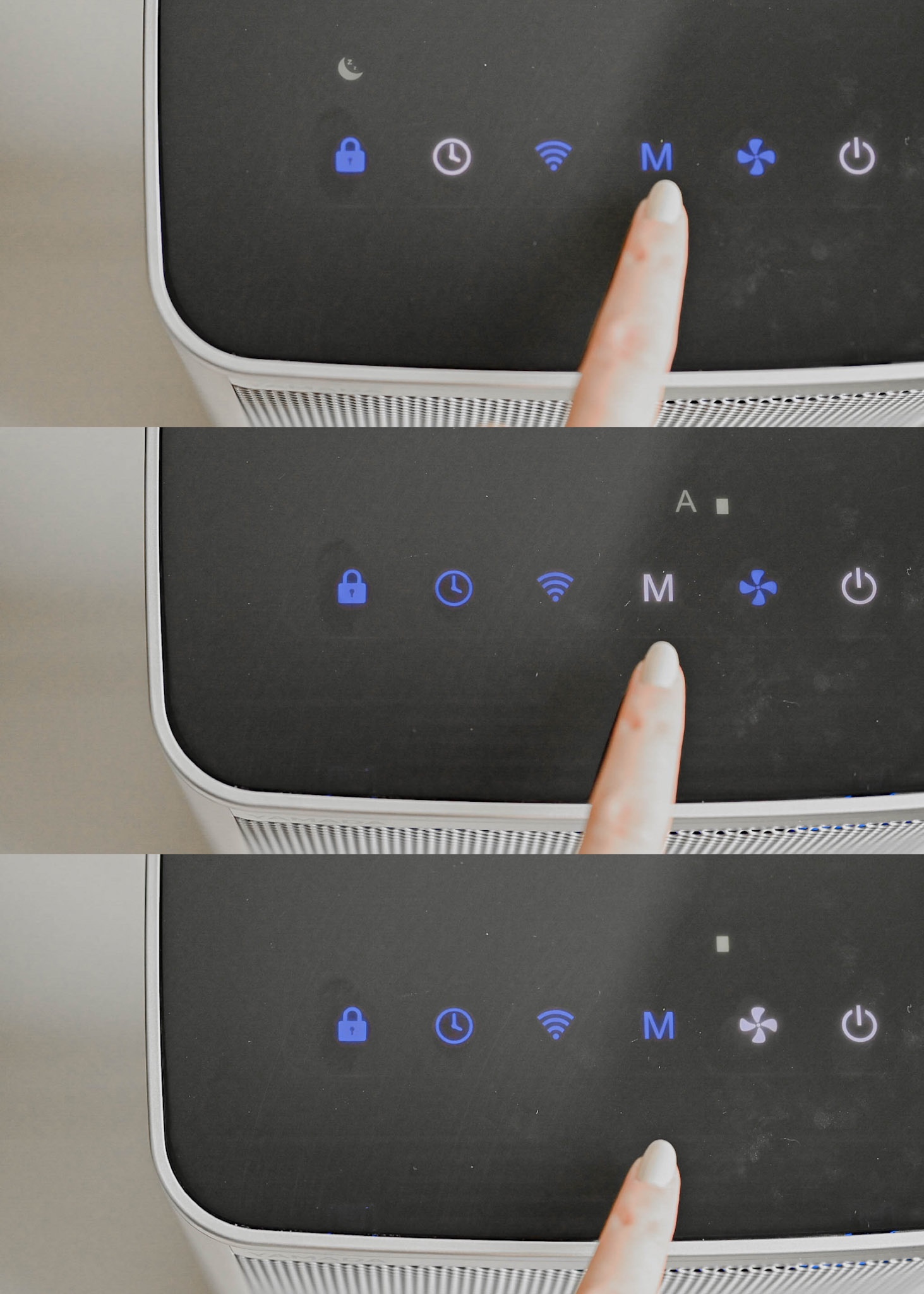 YAMADA靜電集塵空氣清淨機 為貼近使用者需求,設計3種模式:自動、手動、睡眠,透過觸控面板可自由切換。
