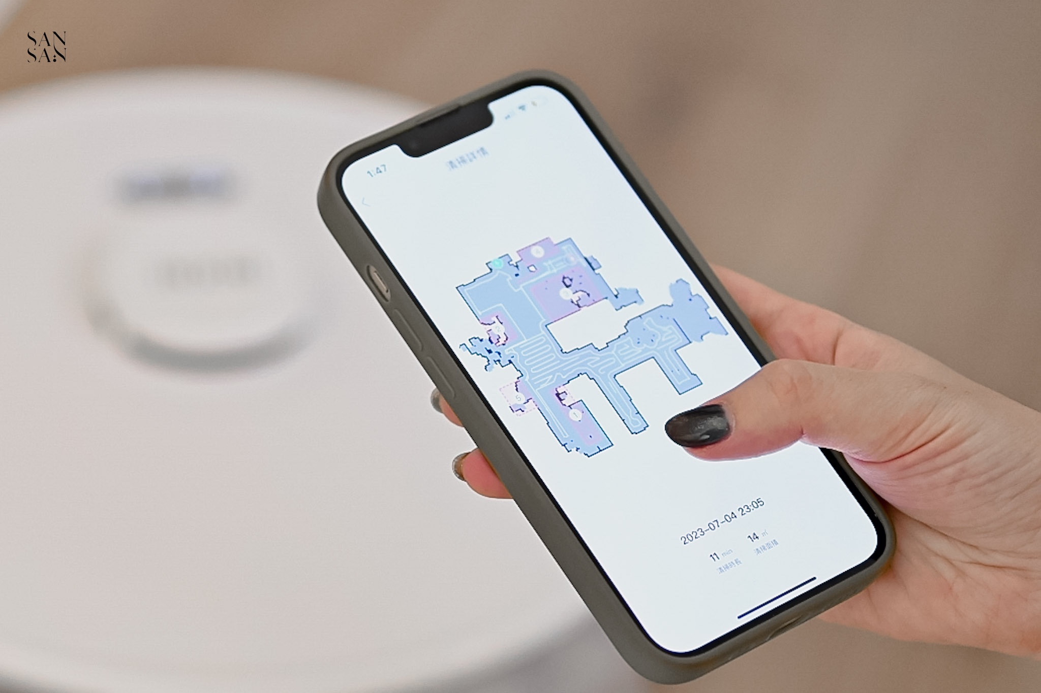 透過APP就可以一手掌握掃地機器人的電量、清掃紀錄,或更進一步調整吸地風速、設定清潔區/禁區等,相當方便。