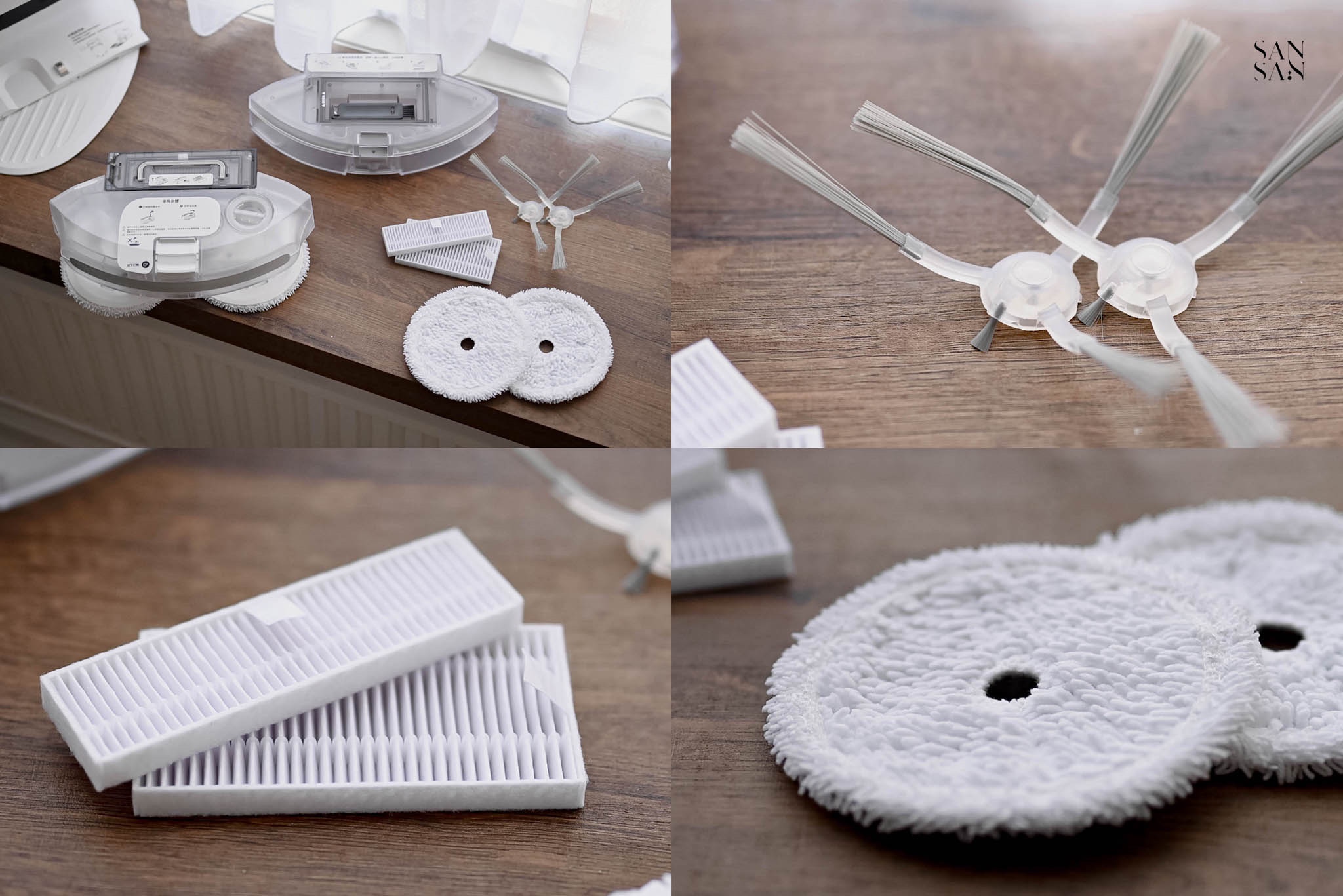 邊刷 x1、掃拖模組過濾網 x1、集塵盒過濾網 x1、拖布 x2