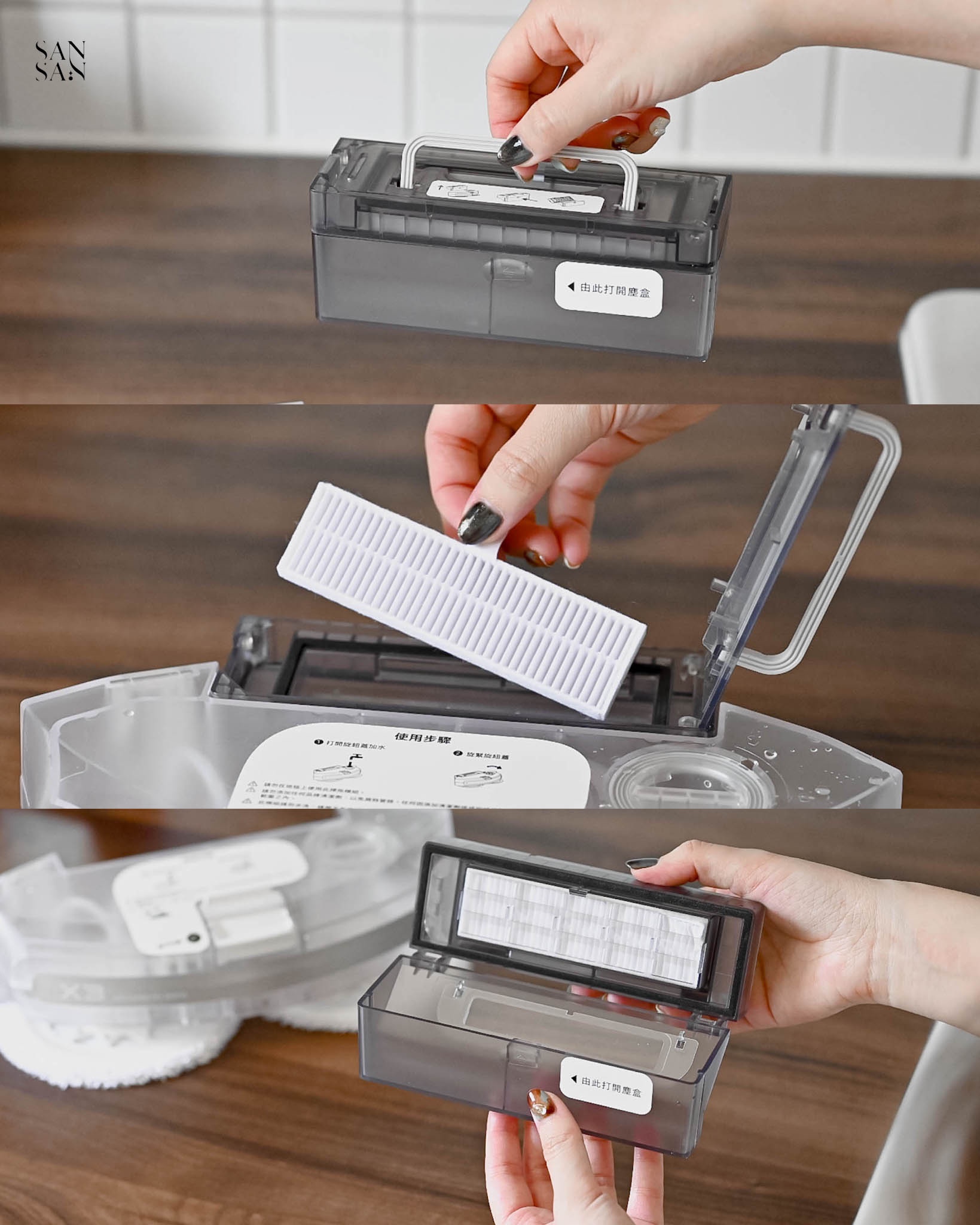 集塵盒模組擁有600ml的容量,如果像sansan家中有寵物毛的狀況,天天都要打掃2次。