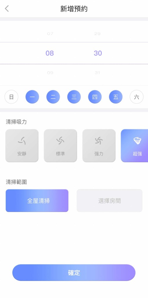 建議可以設定預約排程,這樣就可以讓掃地機器人自動定時進行清掃,不用每天都去設定一次