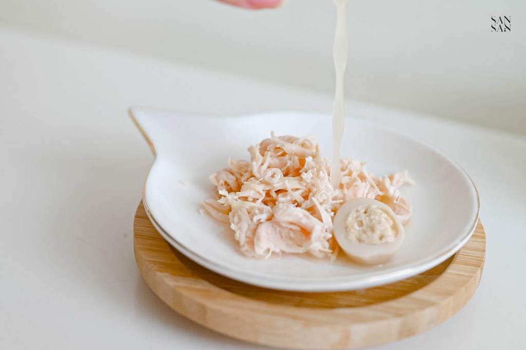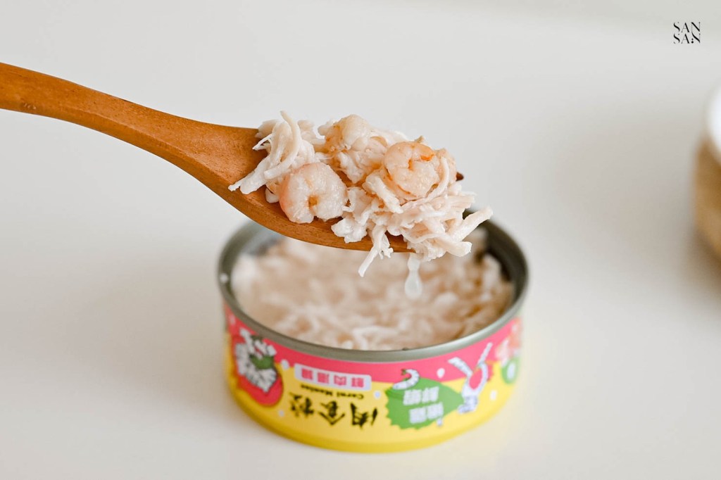 添加雞高湯與小分子雞肉蛋白,雙重雞肉精華帶出食材中的「鮮味」,沒吃過湯罐的Eko,也被香味吸引~