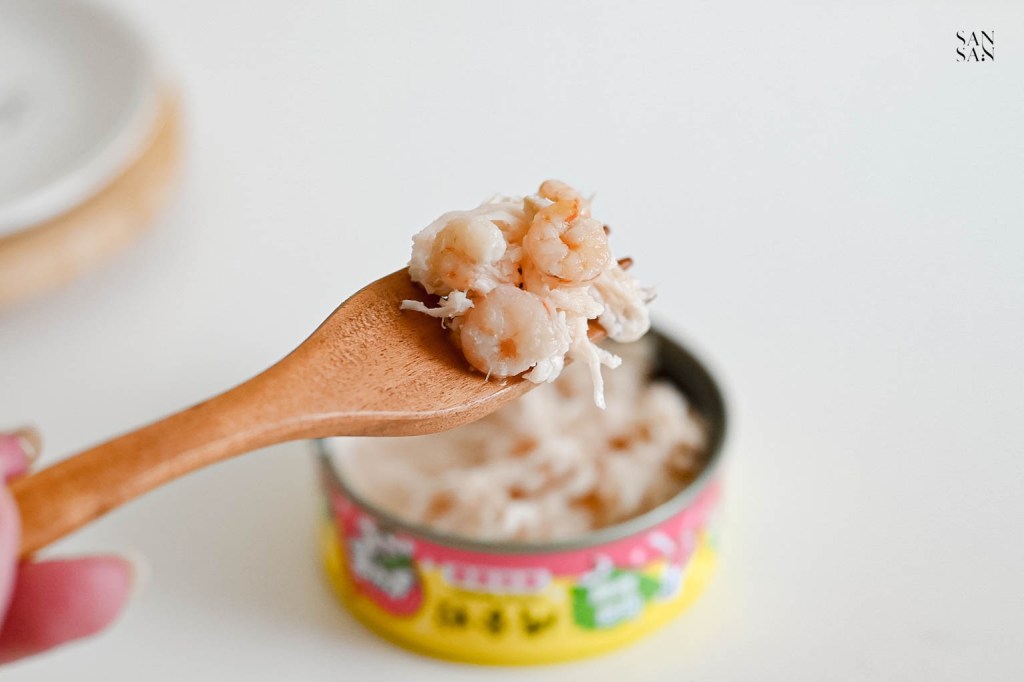 第一次在罐罐中看到完整的蝦肉,連我都覺得好新奇~