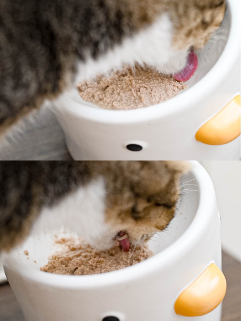 肉泥質地好吸收、好消化,再拌一些水可以幫助小貓咪邊吃飯邊補充水分。