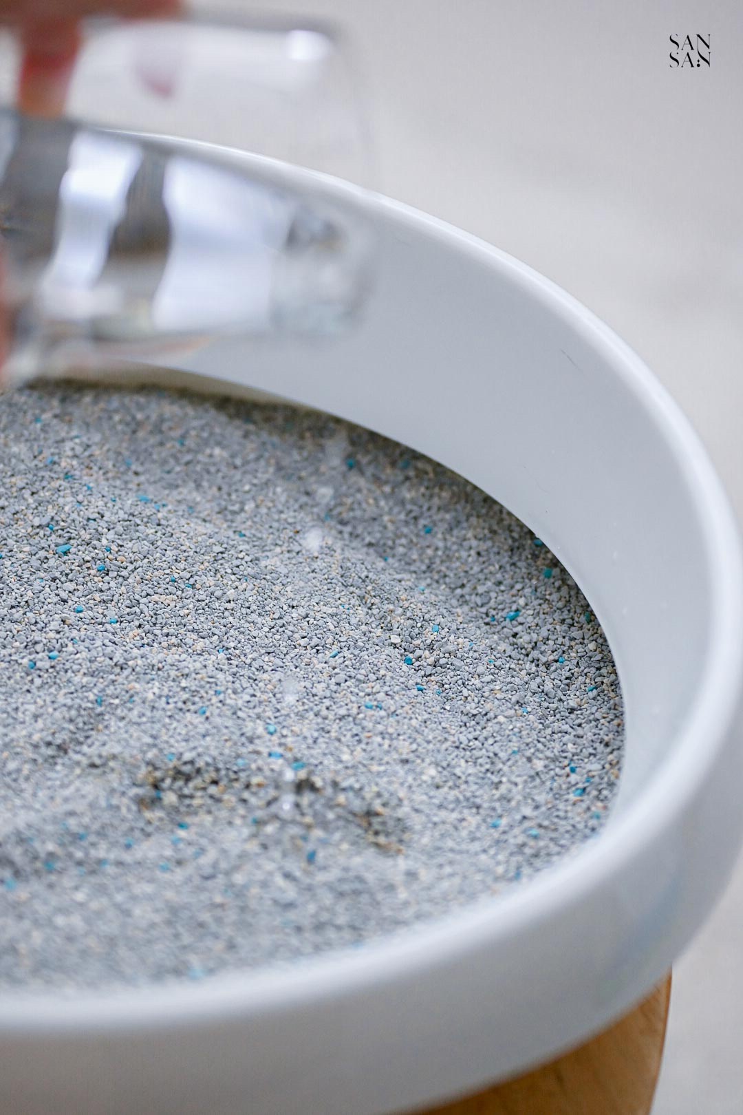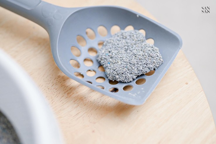 備註:礦砂不可沖馬桶唷!建議鋪7-10cm,避免貓砂太淺容易沾黏底部導致結塊崩散,不好清潔。