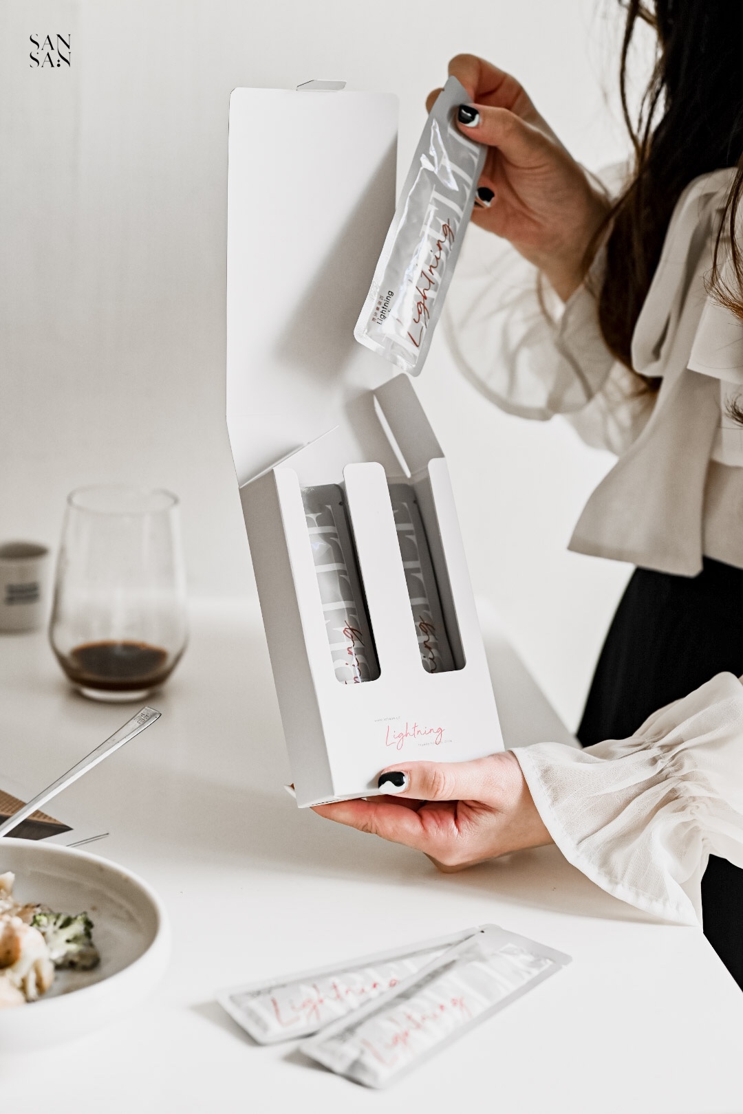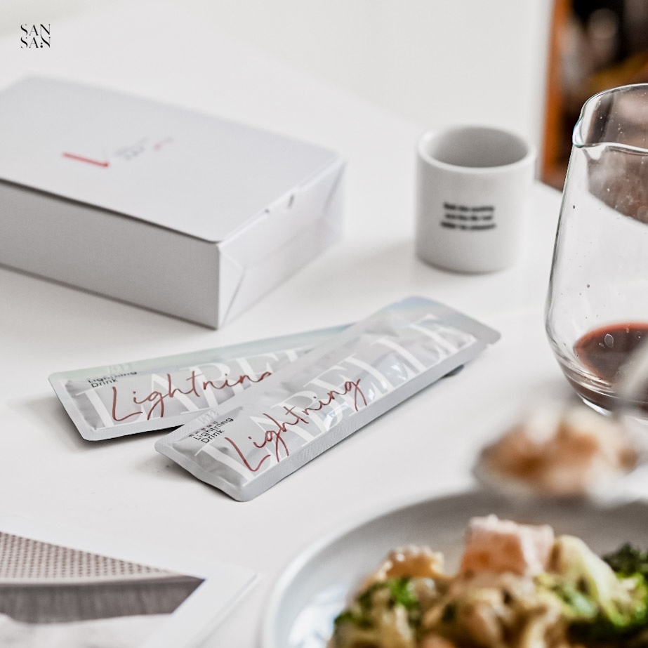sansan習慣在吃午餐前喝一包,撕開即可飲用,非常方便!