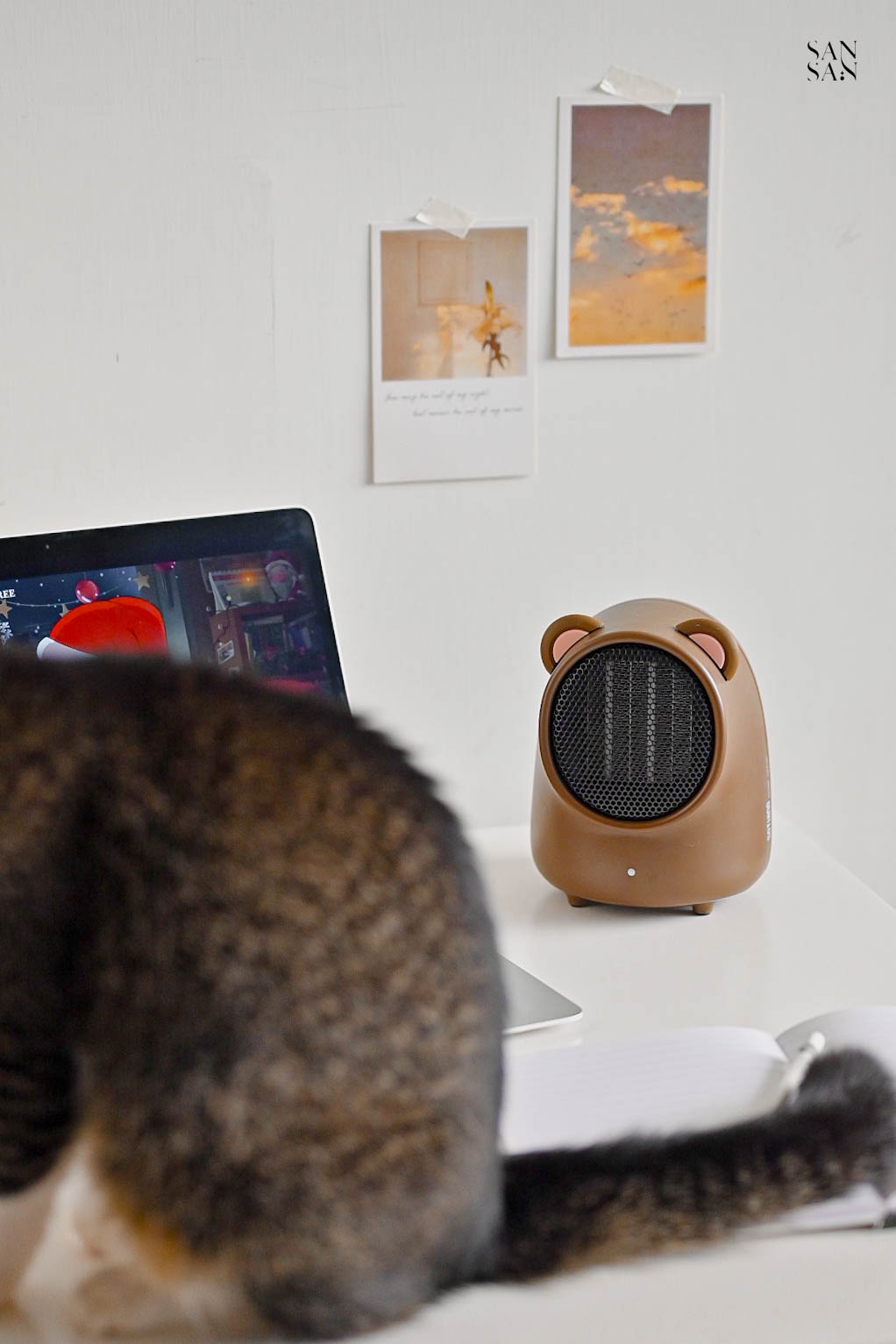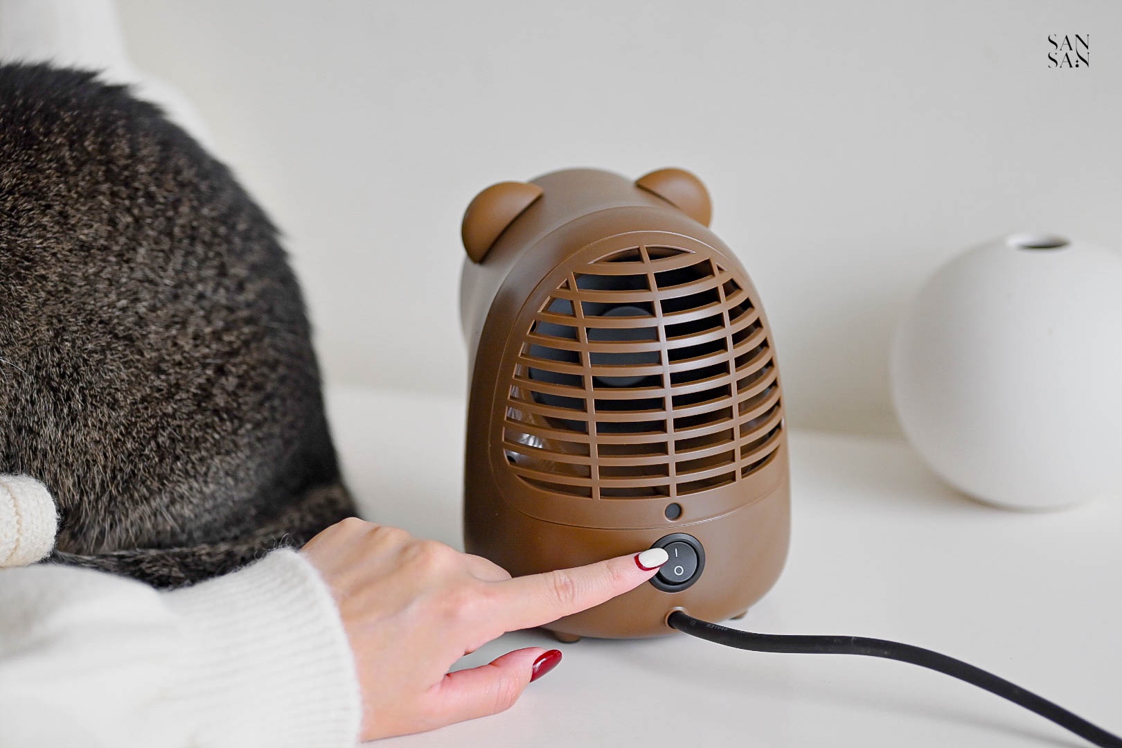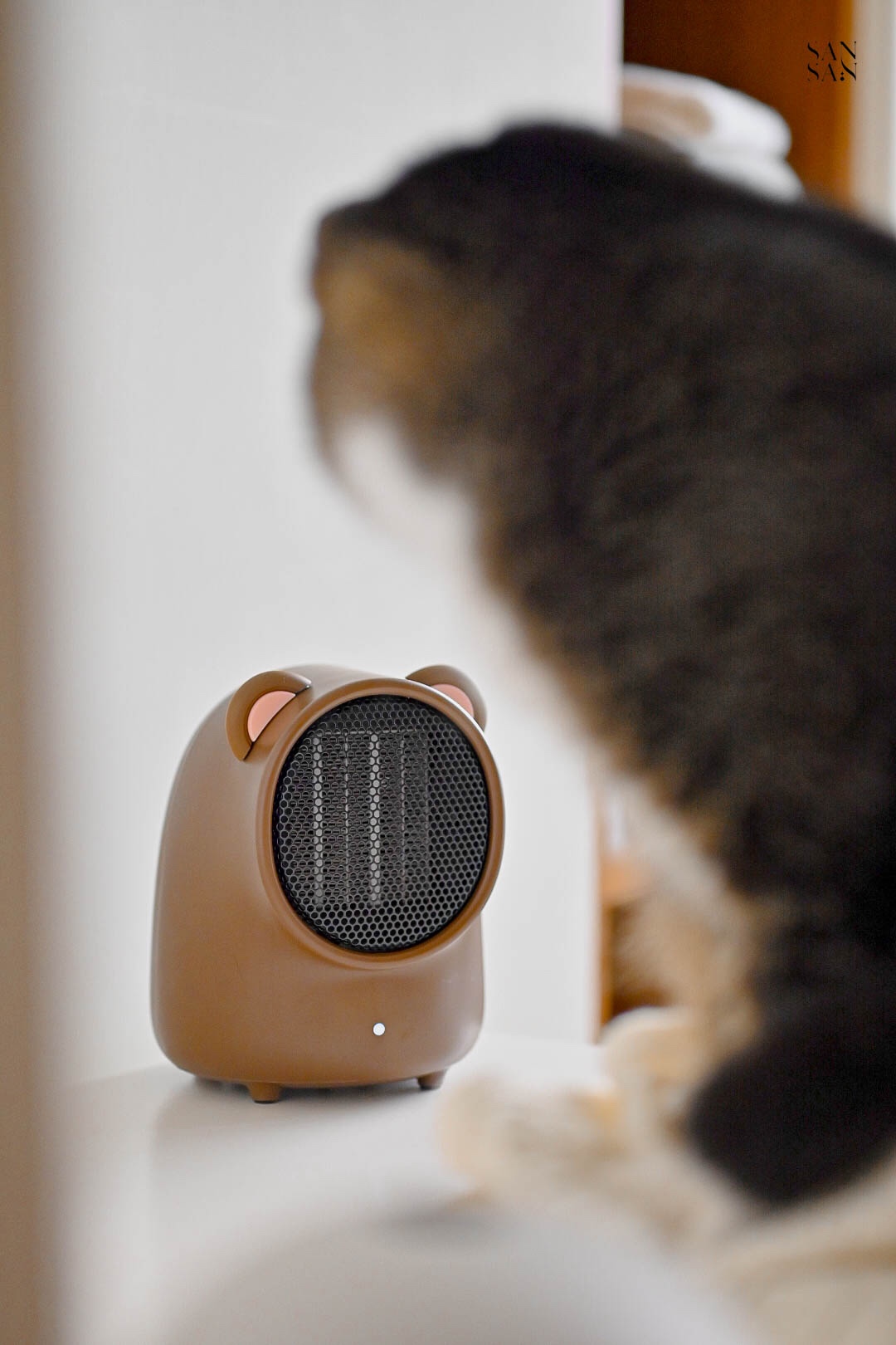 雖然他只是小小的桌面暖風機,主要目的是針對小範圍保暖,不是用來提升整個空間的溫度。但是對於常常窩在辦公桌前的sansan來說已經相當足夠~重點是造型相當可愛呀!!冷冷的冬日,和小貓咪窩在一起吹著暖風機,打造一隅溫暖舒適的小天地。