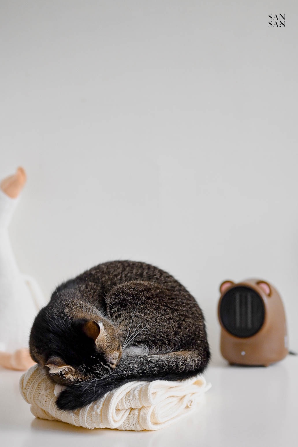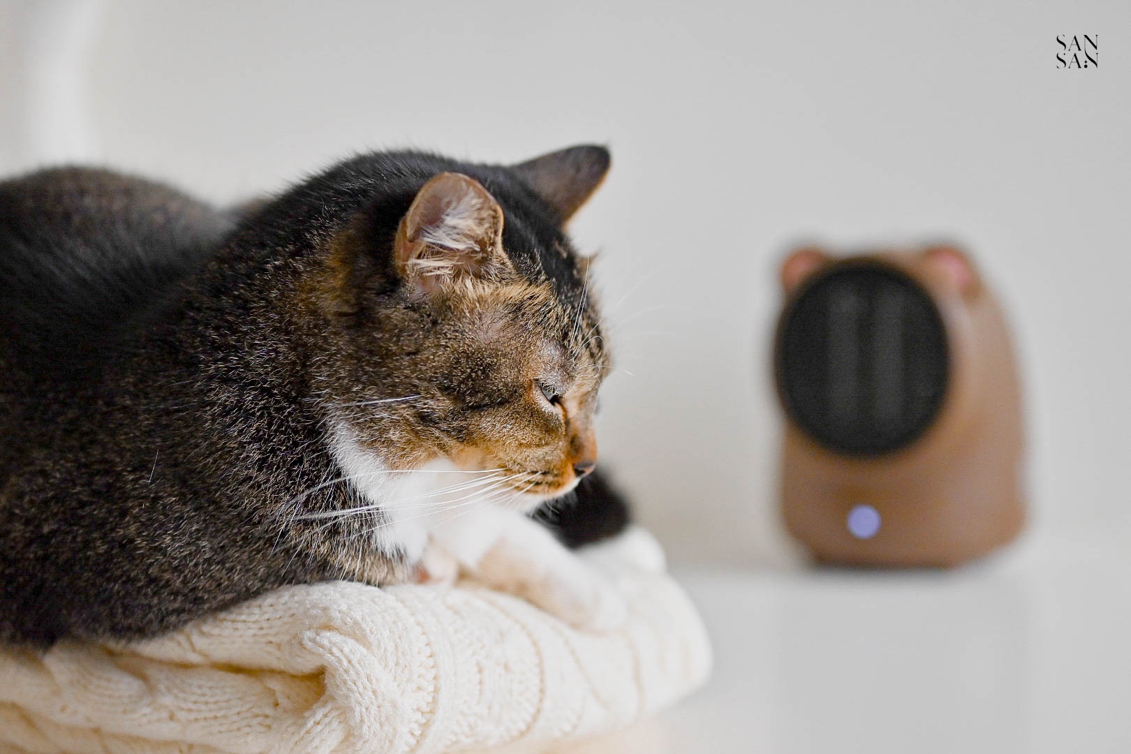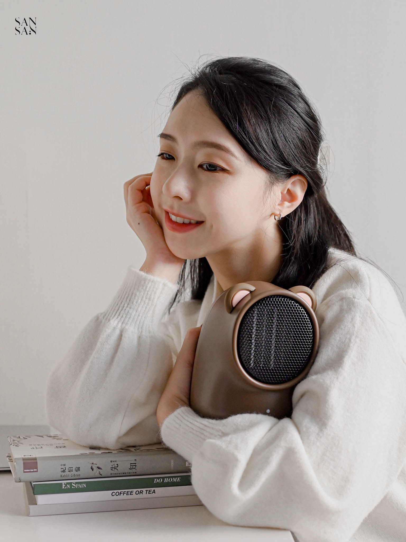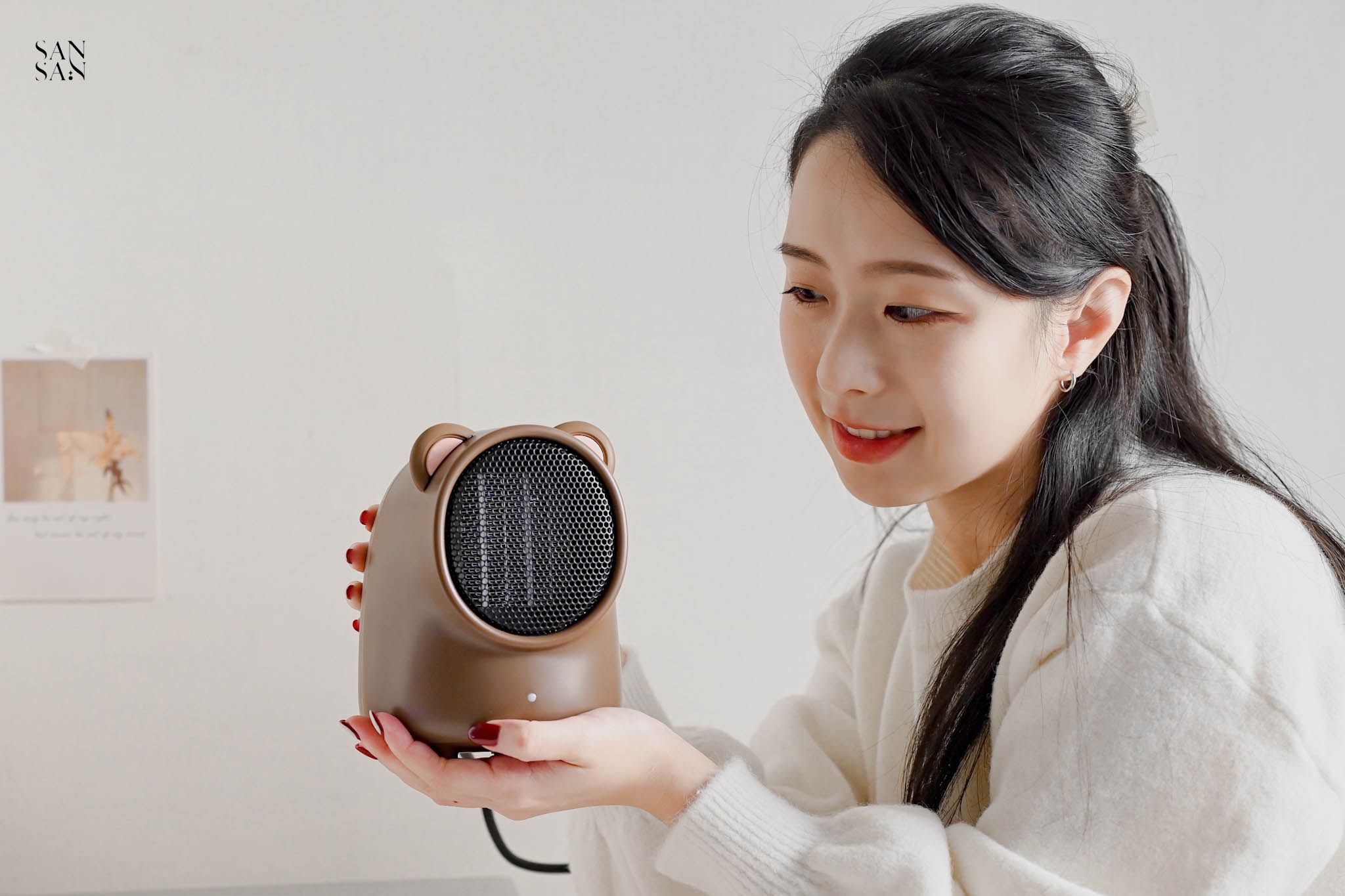 雖然他只是小小的桌面暖風機,主要目的是針對小範圍保暖,不是用來提升整個空間的溫度。但是對於常常窩在辦公桌前的sansan來說已經相當足夠~重點是造型相當可愛呀!!冷冷的冬日,和小貓咪窩在一起吹著暖風機,打造一隅溫暖舒適的小天地。