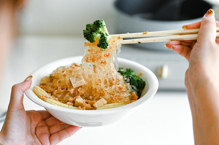 淋在冬粉及燙蔬菜上,一人份精緻餐點輕鬆完成