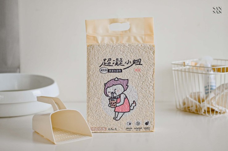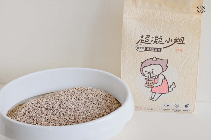 【超凝小姐】的這款益生菌除臭豆腐砂,是sansan的貓奴朋友推薦的。下午茶香氛共有兩款香味:珍珠奶茶香、抹茶歐蕾香。這次選了有伯爵茶香的珍珠奶茶香,帶有一點甜味,比較適合接受香氛款的朋友。