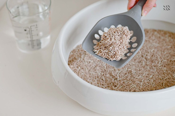 - 確保倒入貓砂盆的貓砂高度高於5cm