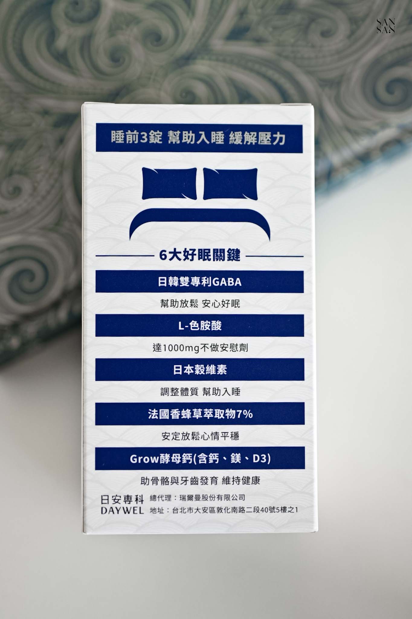 這次和同樣被睡眠問題困擾的你,分享一款個人覺得超有感的入眠神器:【DAYWEL日安專科】晚安舒眠GABA,經過親身體驗,sansan真心覺得 晚安舒眠GABA 是提升睡眠品質的好幫手,不妨試試看!
