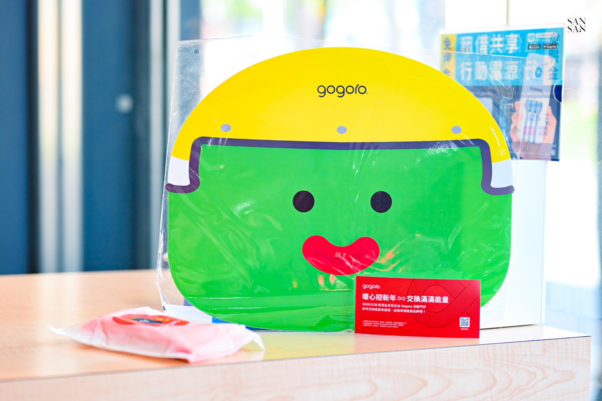 sansan立刻拿著禮券去我購買Gogoro的門市兌換,門市人員非常親切,有兩個禮物選擇——Gogoro 餐墊或 Gogoro 襪子,我選擇了餐墊,設計非常可愛,實用性也很高。