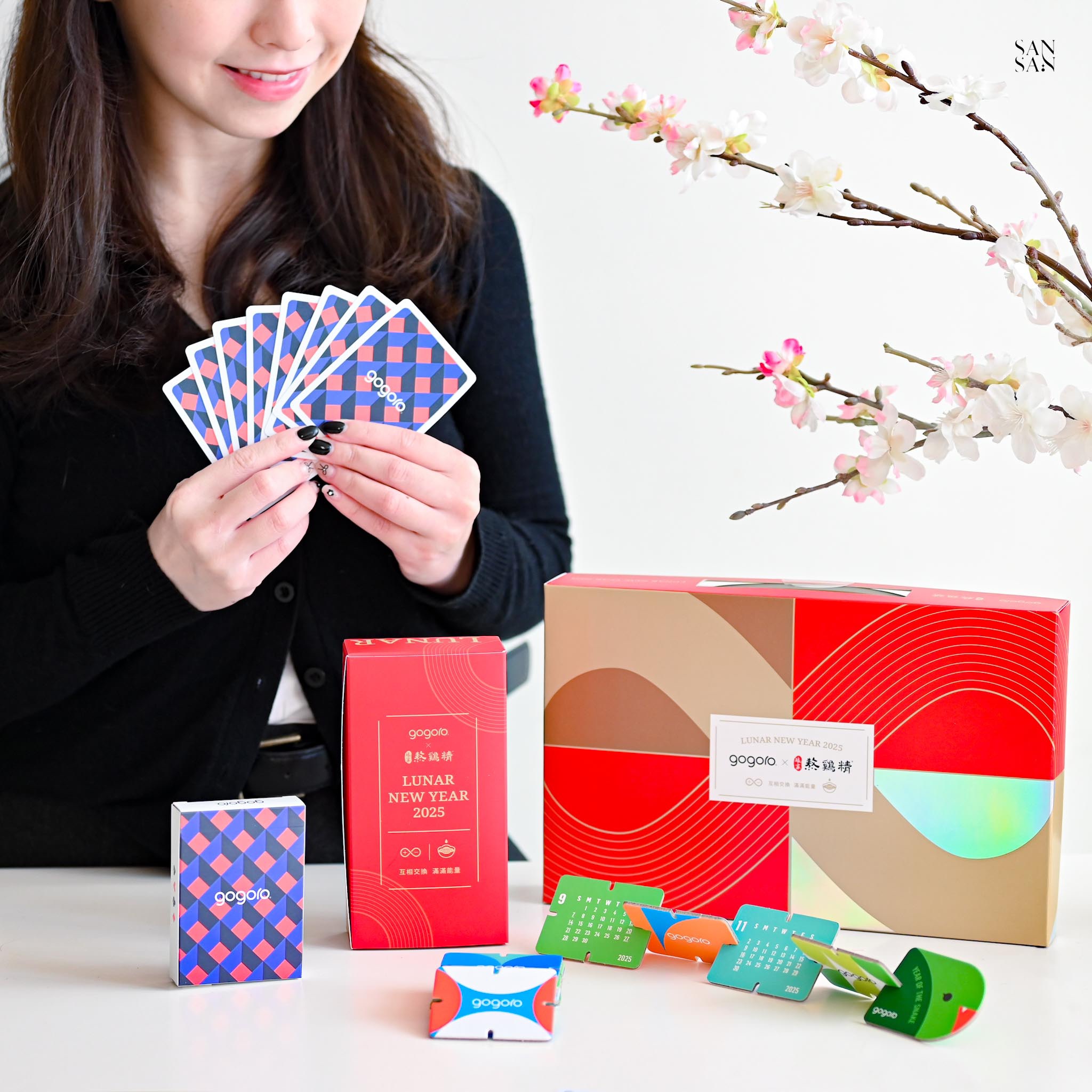 禮盒內容物:Gogoro限量撲克牌與年曆卡,則選用可回收材質,以行動落實永續責任♻️