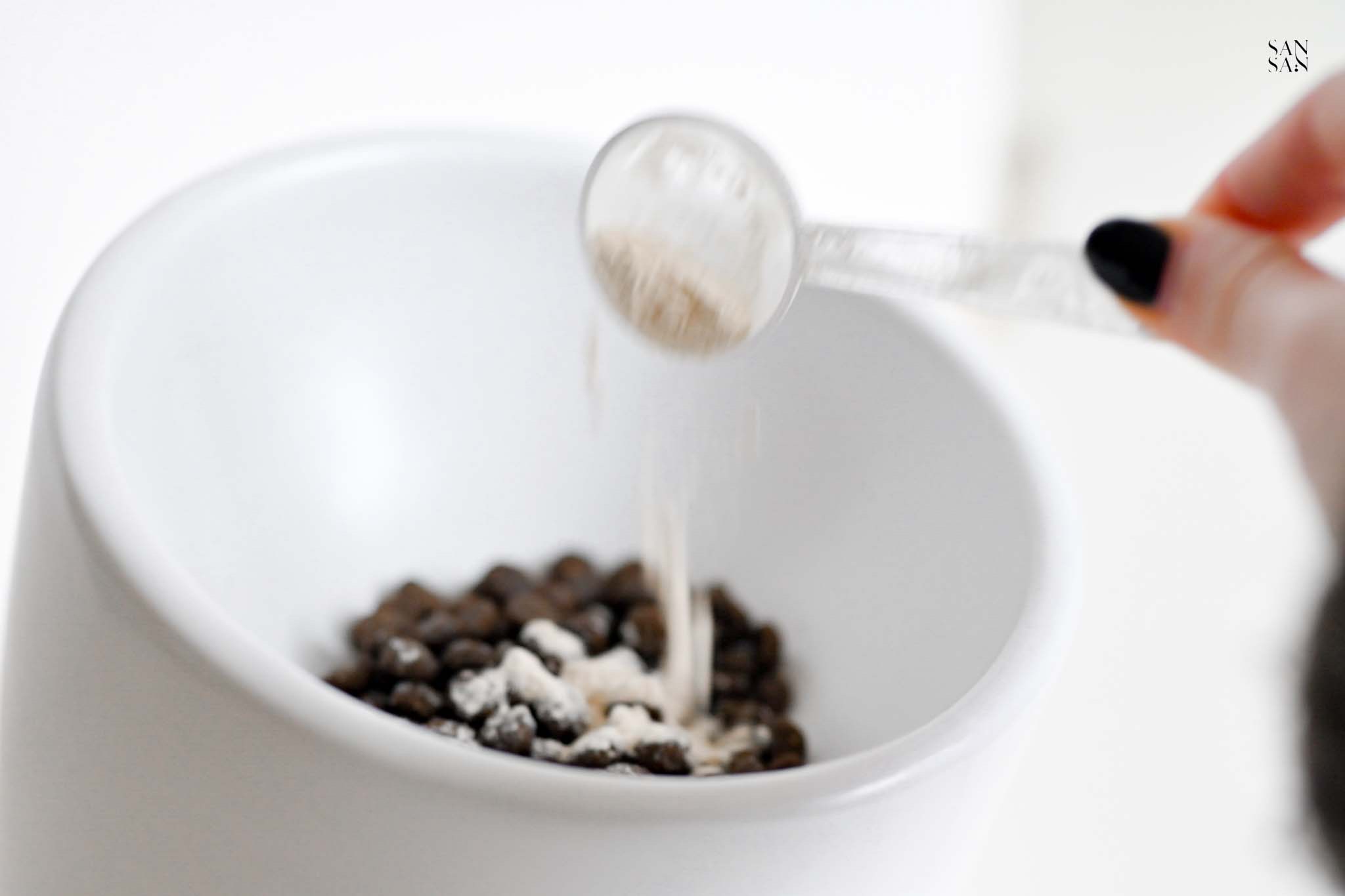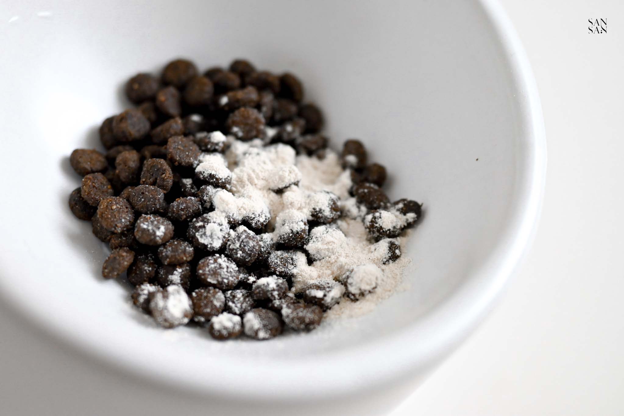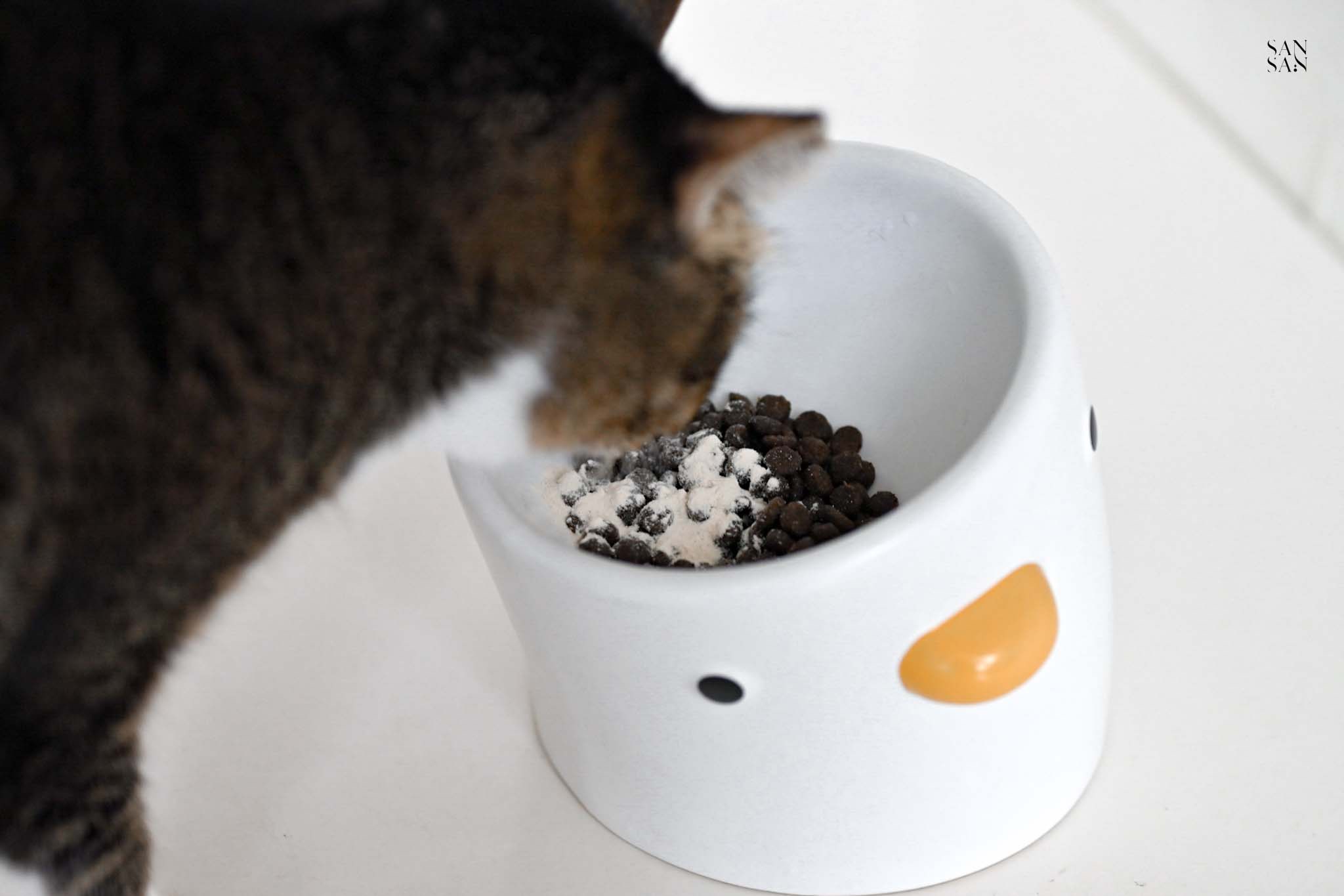 ✔ 撒在乾飼料上 → 和乾飼料拌勻,香氣十足~也是不用適應期,Eko馬上就開吃
