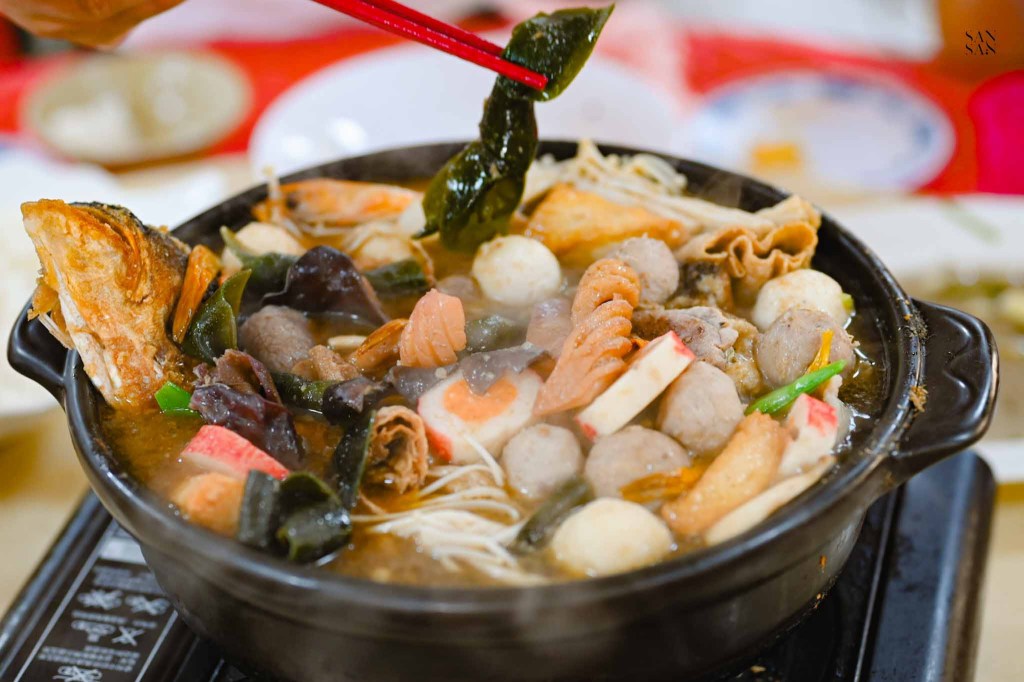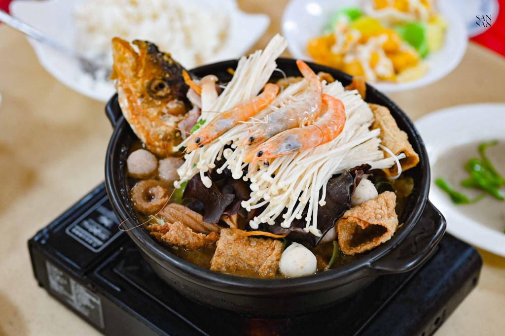酥炸過的大頭鰱,和沙茶鍋底融合出香氣濃郁的湯底。