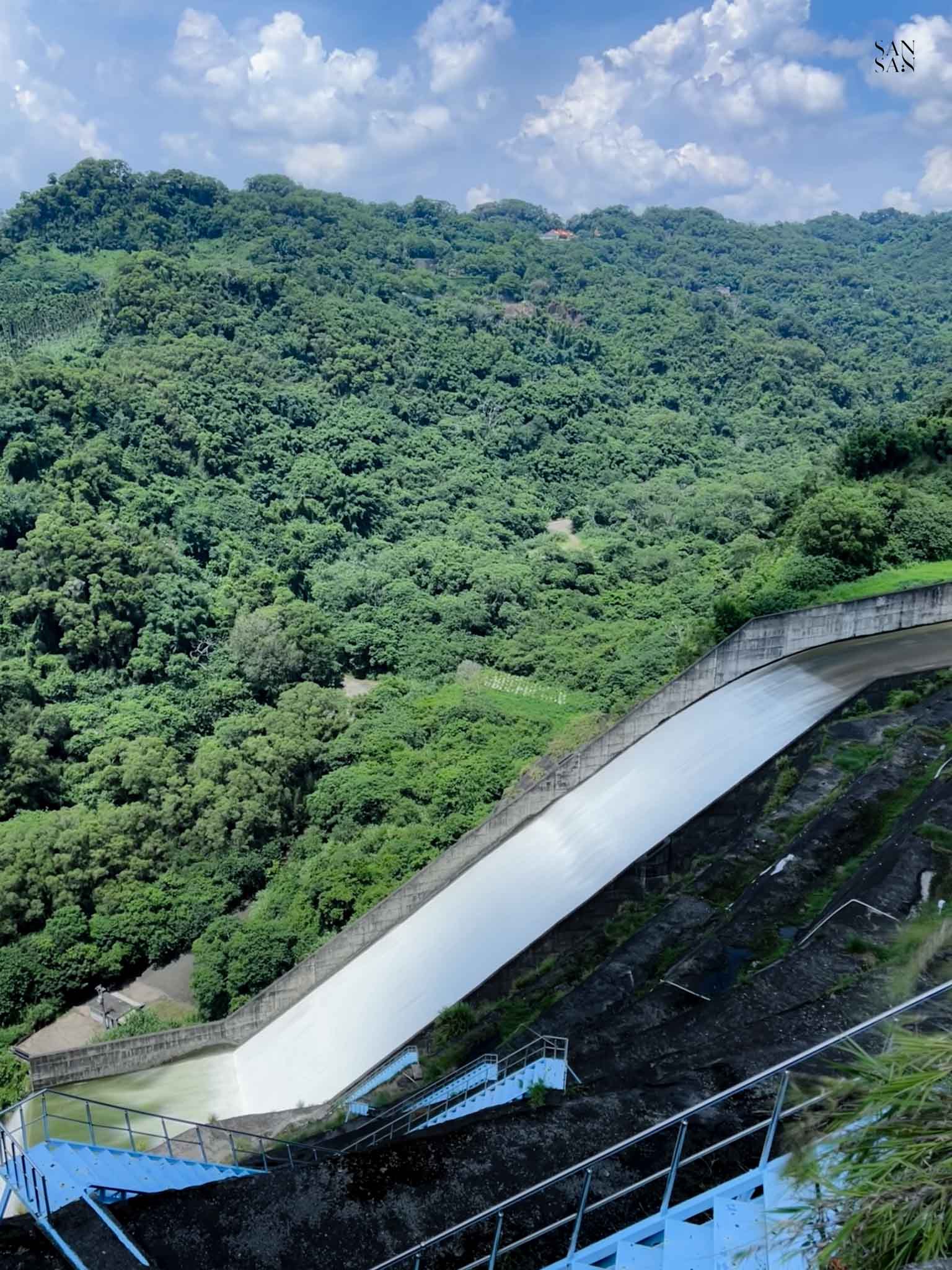 左邊是在觀景台台上可以俯瞰的溢洪道,超像巨型滑水道~