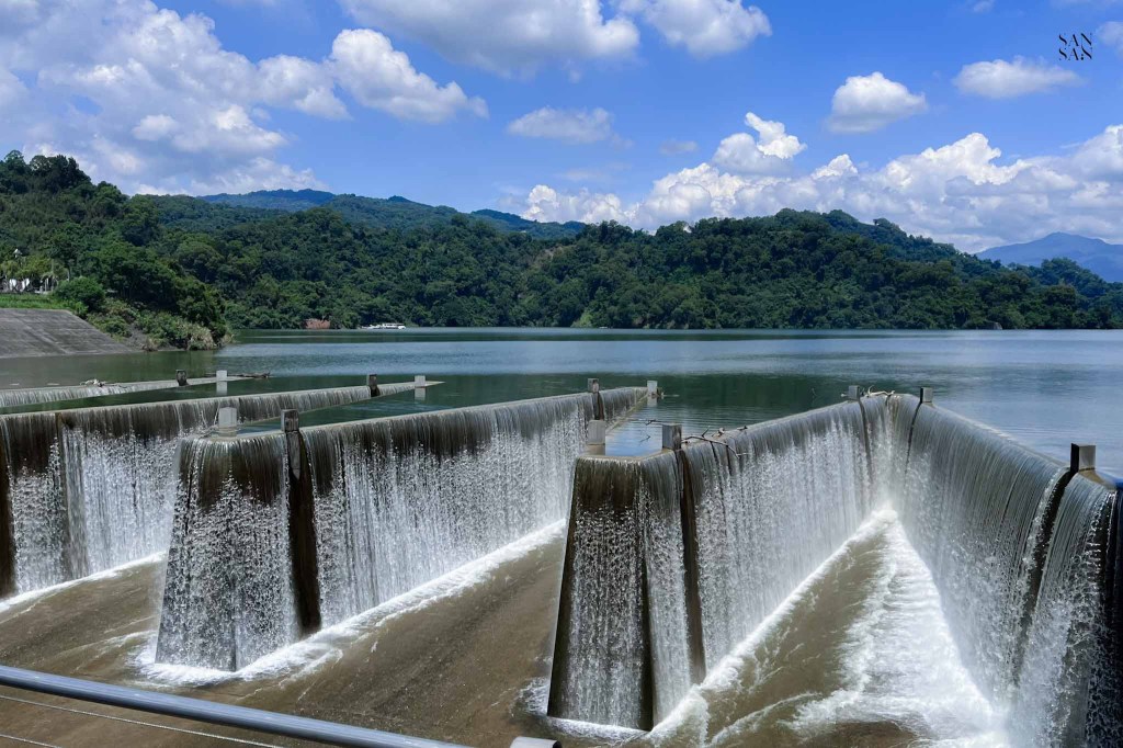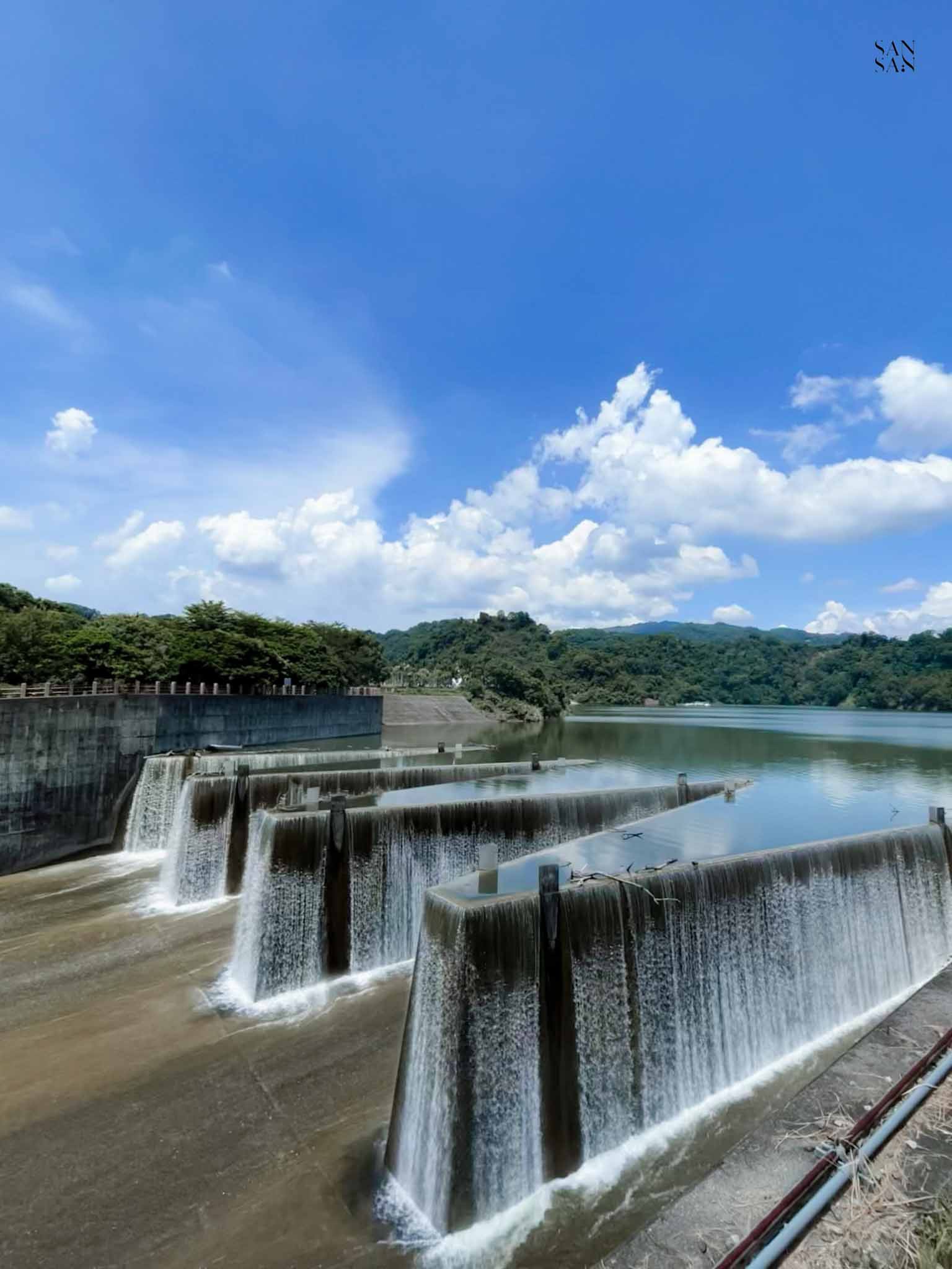 接著沿著步道向下走,路程不會很遠,可通往苗栗鯉魚潭水庫的知名景點 鋸齒堰,近距離欣賞洩洪溢流時的壯麗美景。
