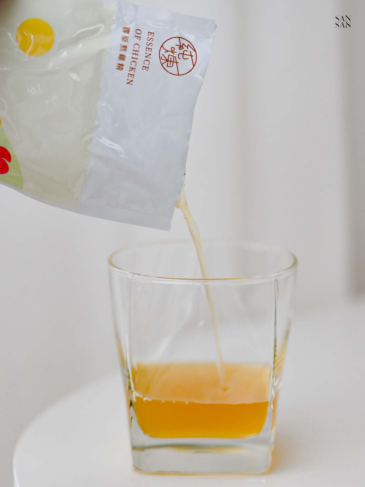 純煉的膠原熬雞精相當清澈,沒有多餘油脂及雜質,喝起來也清爽的讓sansan特別驚喜!