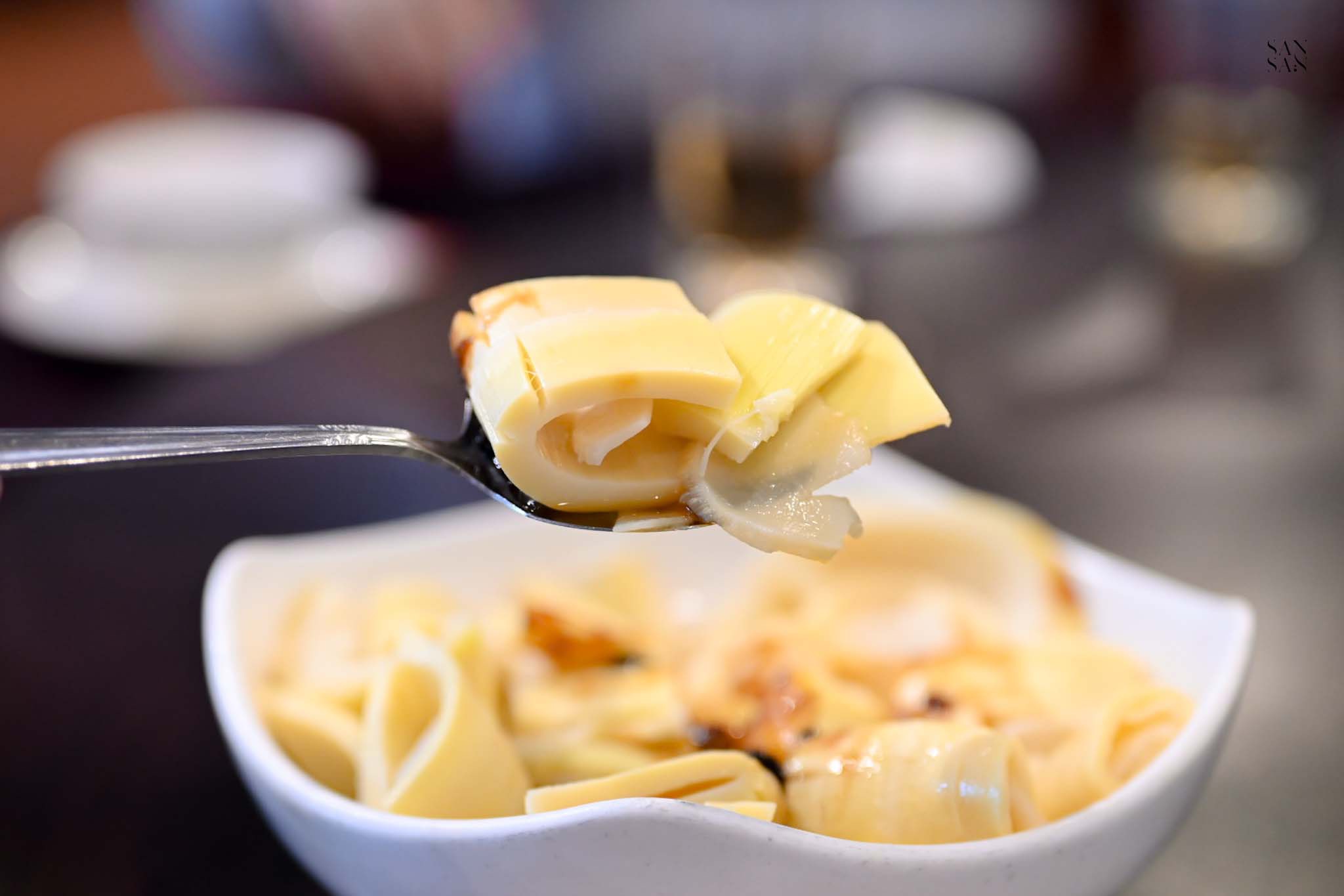 sansan尤其喜歡他們的豆乾和魷魚,切的寬些不只吃起來更滿足外,還能吃到豆干的豆香,魷魚的肉還是Q彈的~