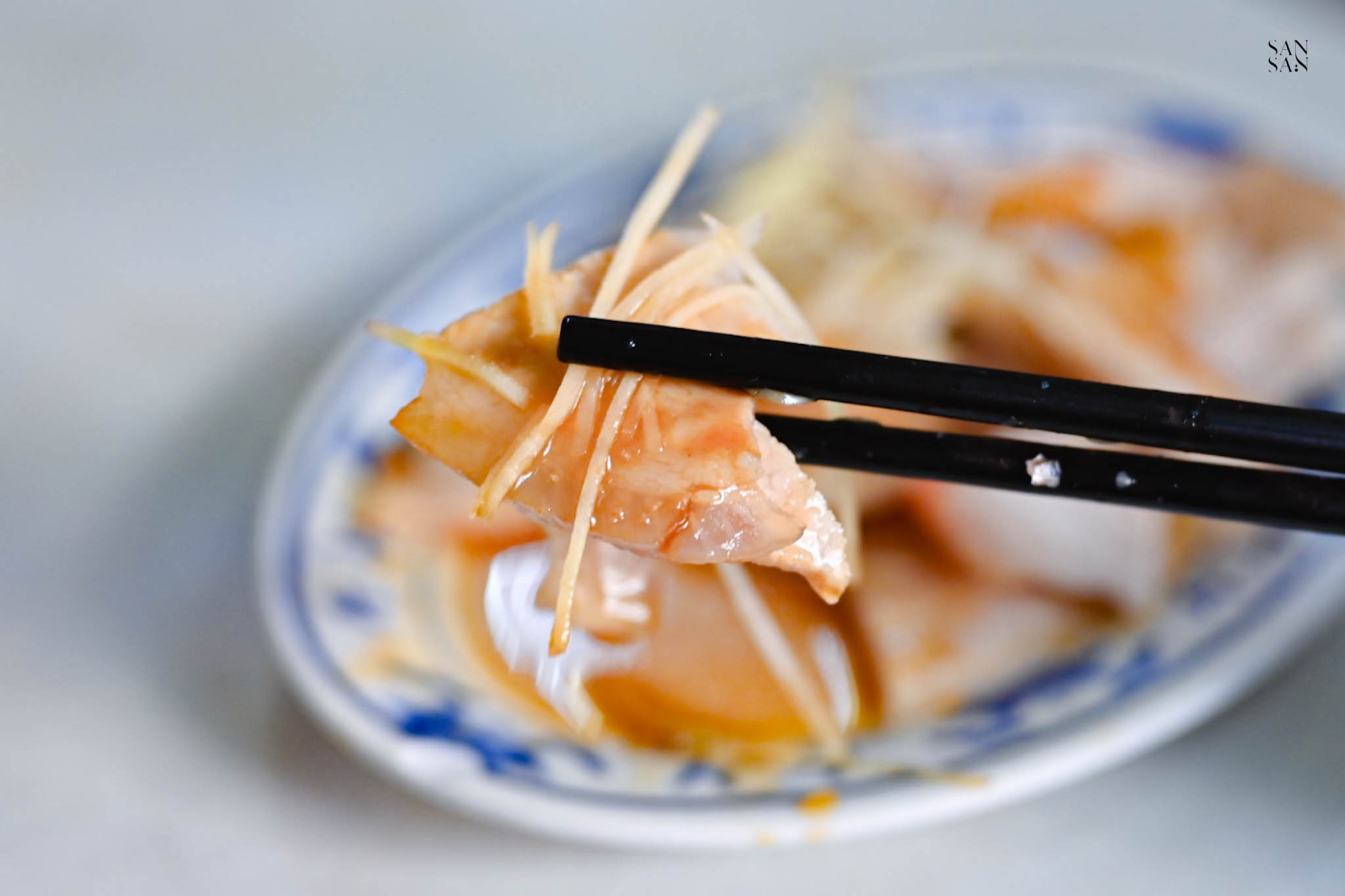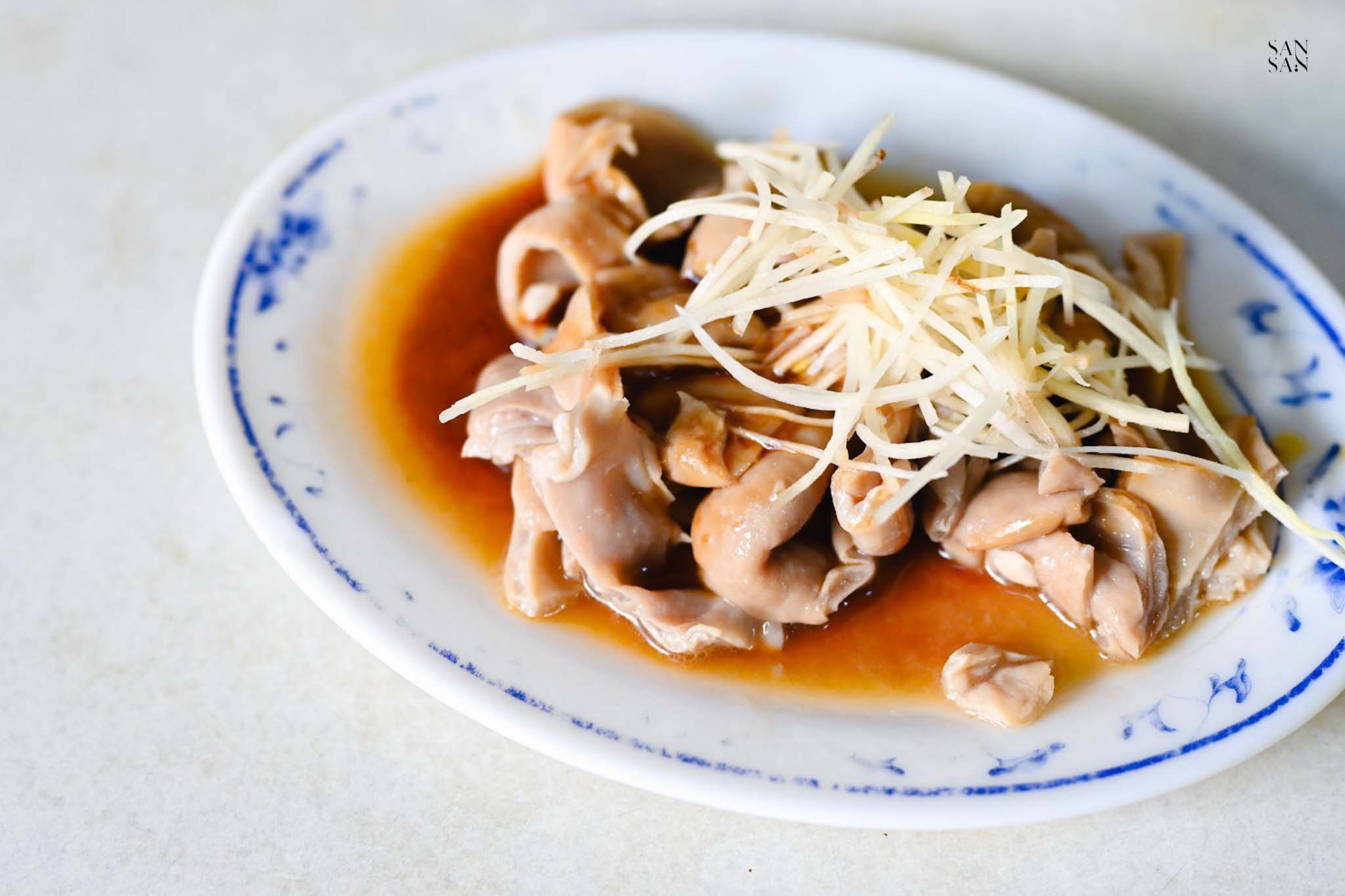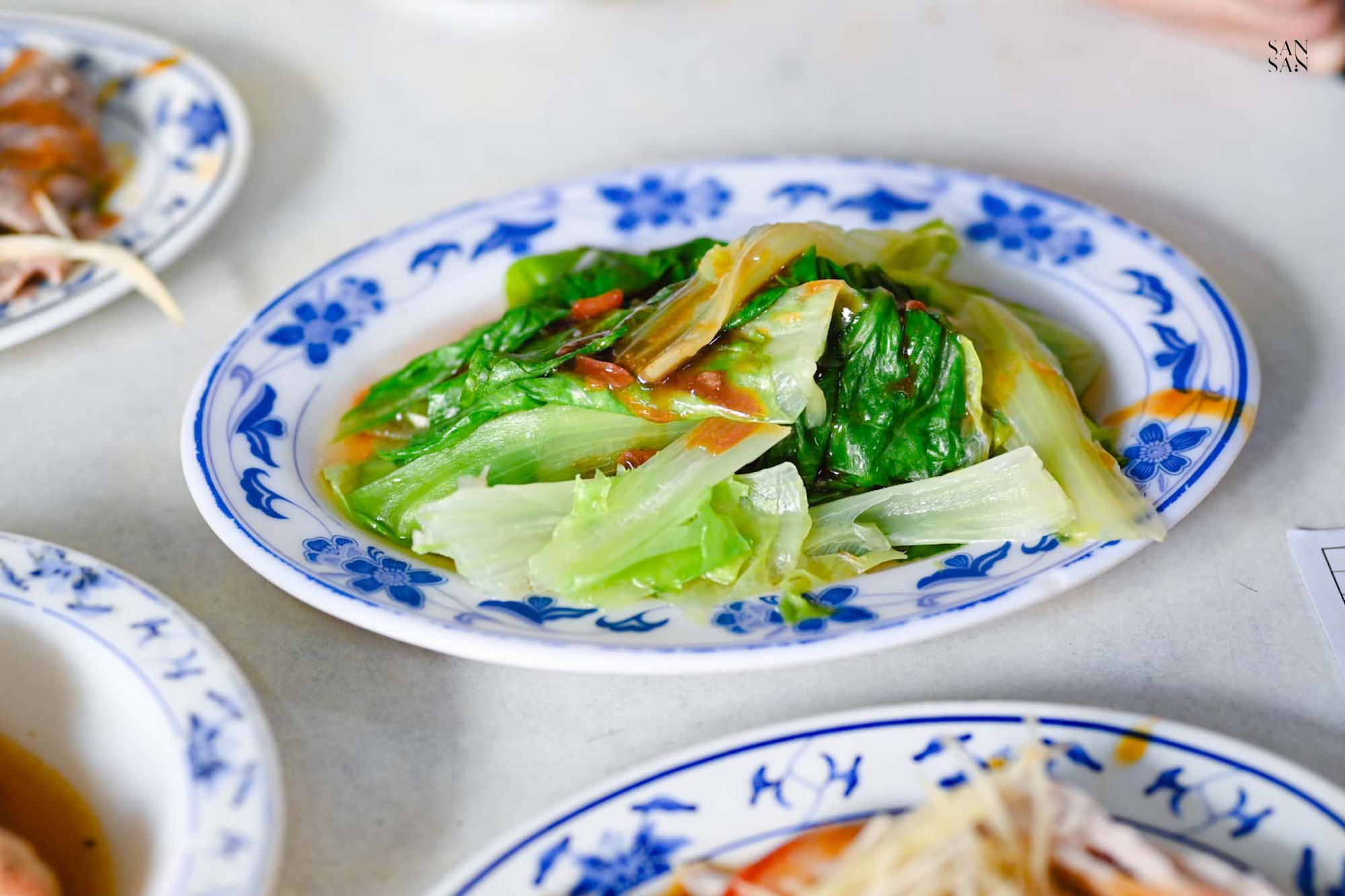 川燙的時間剛剛好,新鮮又軟嫩,上頭的淋醬和薑絲更是小菜的靈魂,醬汁鹹中帶有微甜,有吃辣的朋友可以再加點辣醬提味。