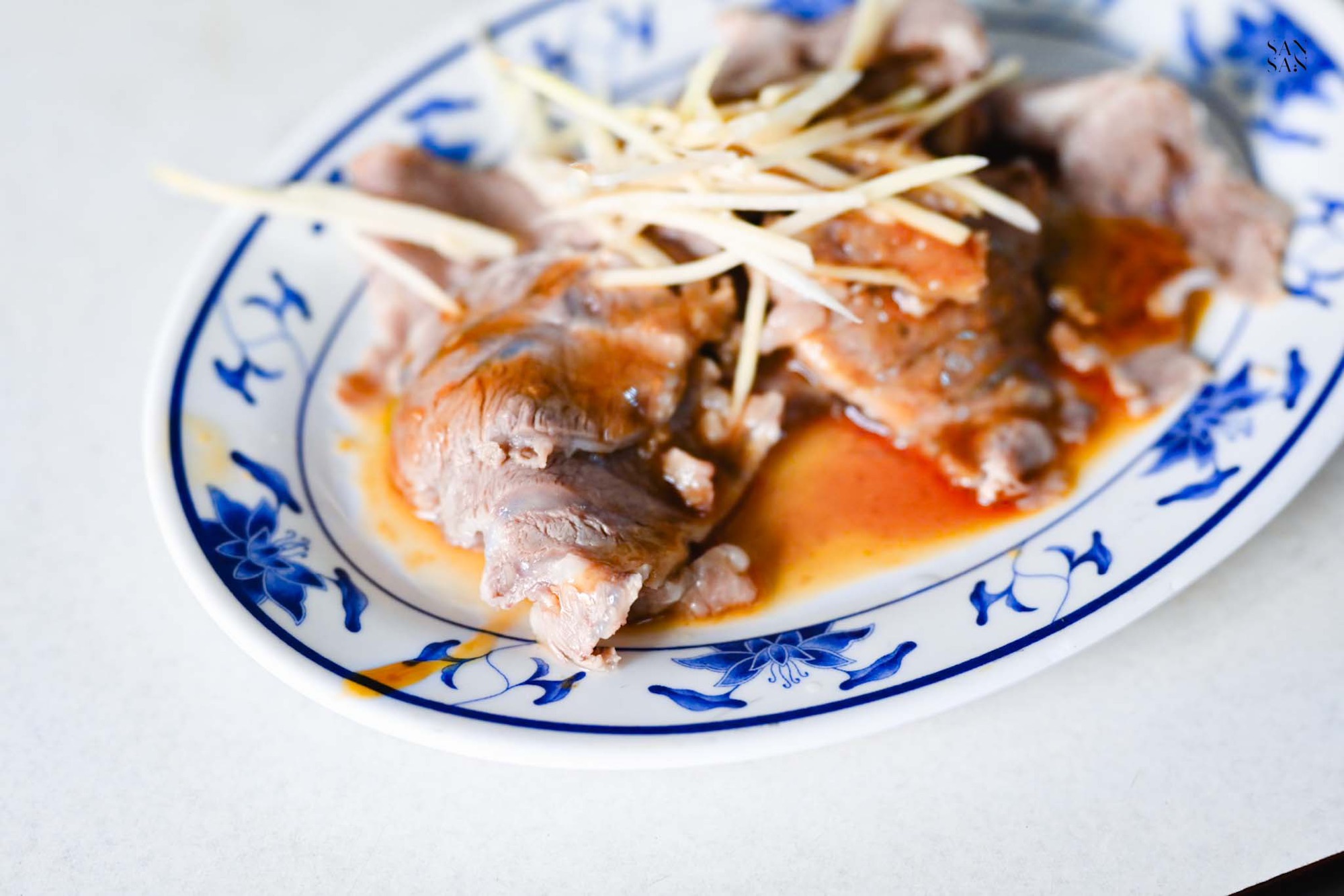 川燙的三層肉一點也不油膩,不過相較滷大腸和肝連就顯得稍微普通。