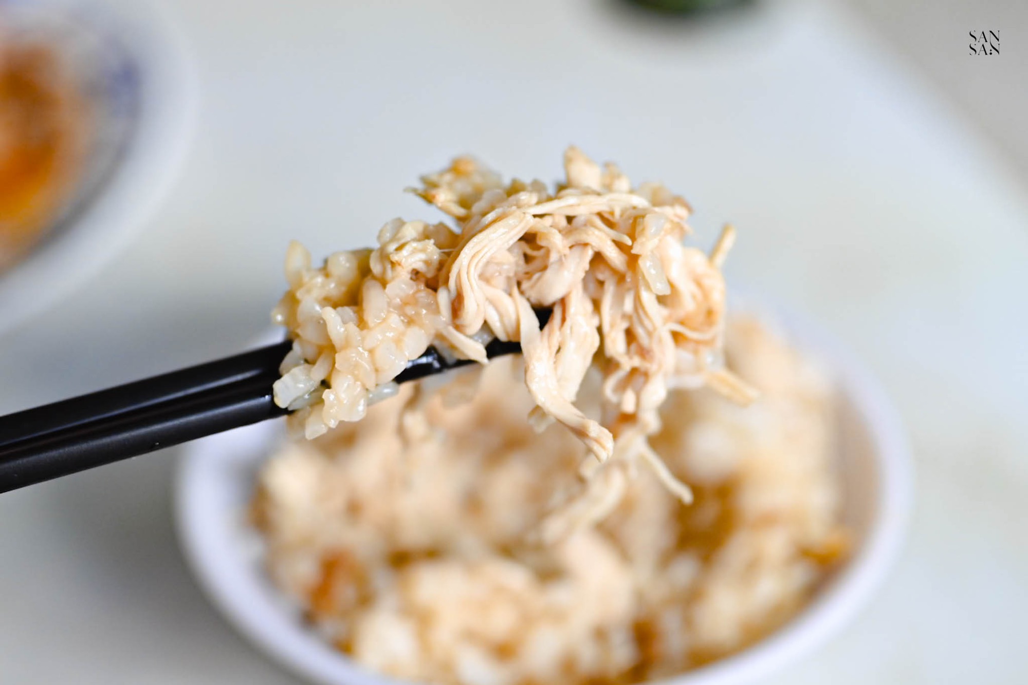 雞肉飯的雞肉絲不會乾柴,白飯粒粒分明,滷汁清淡不會死鹹,整體來說sansan覺得少了油香。
