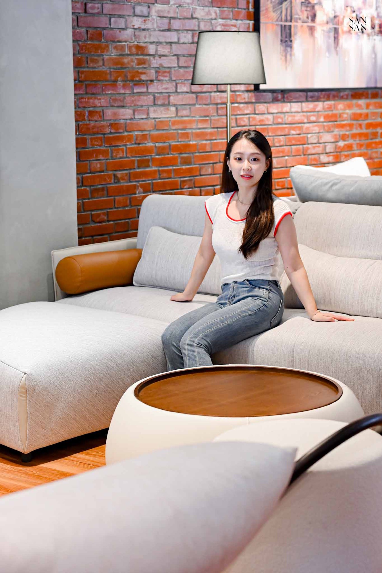 sansan在一樓就先看上的這張超級美式的 Flora沙發,馬上試坐看看~好喜歡呀!