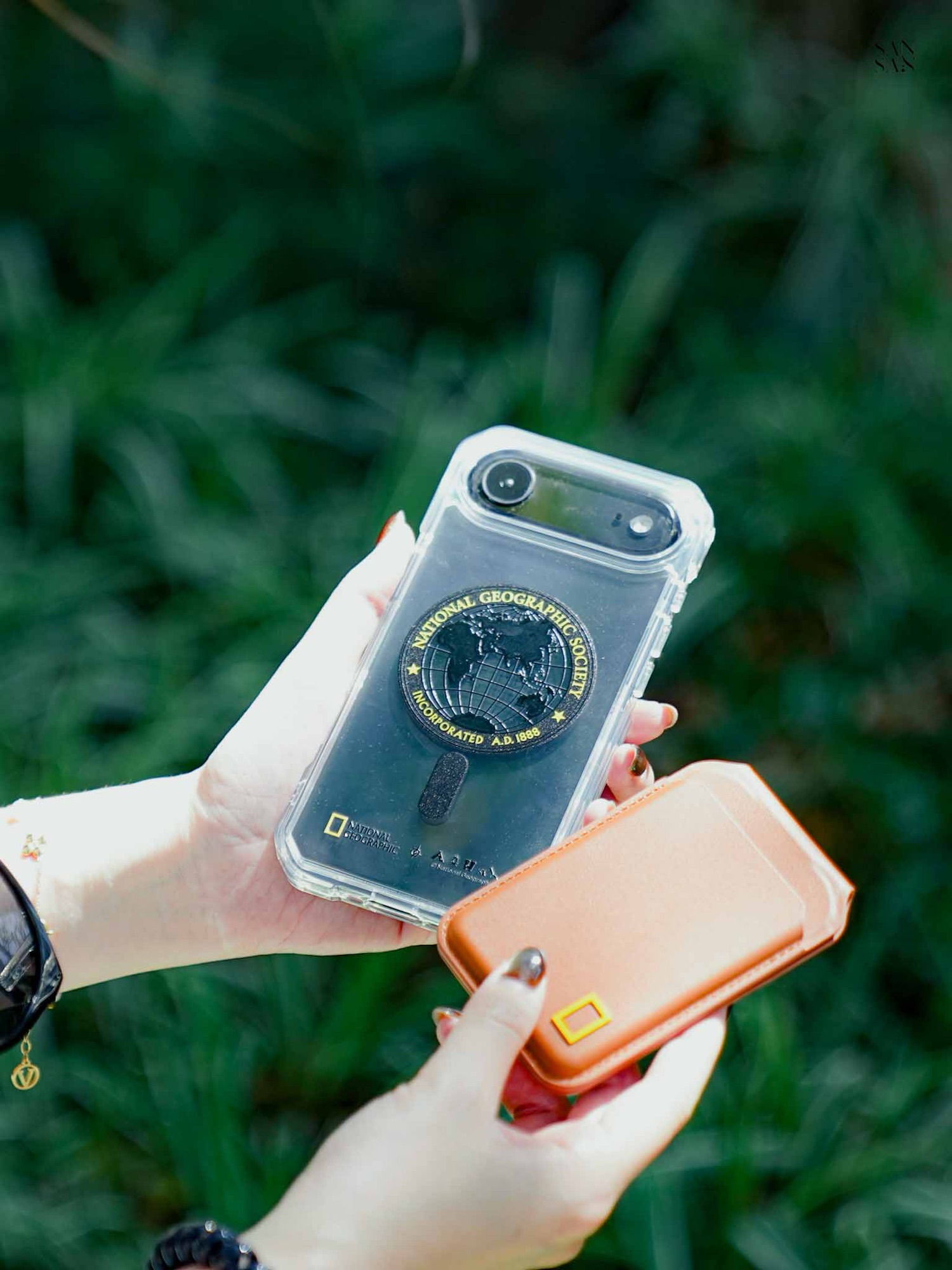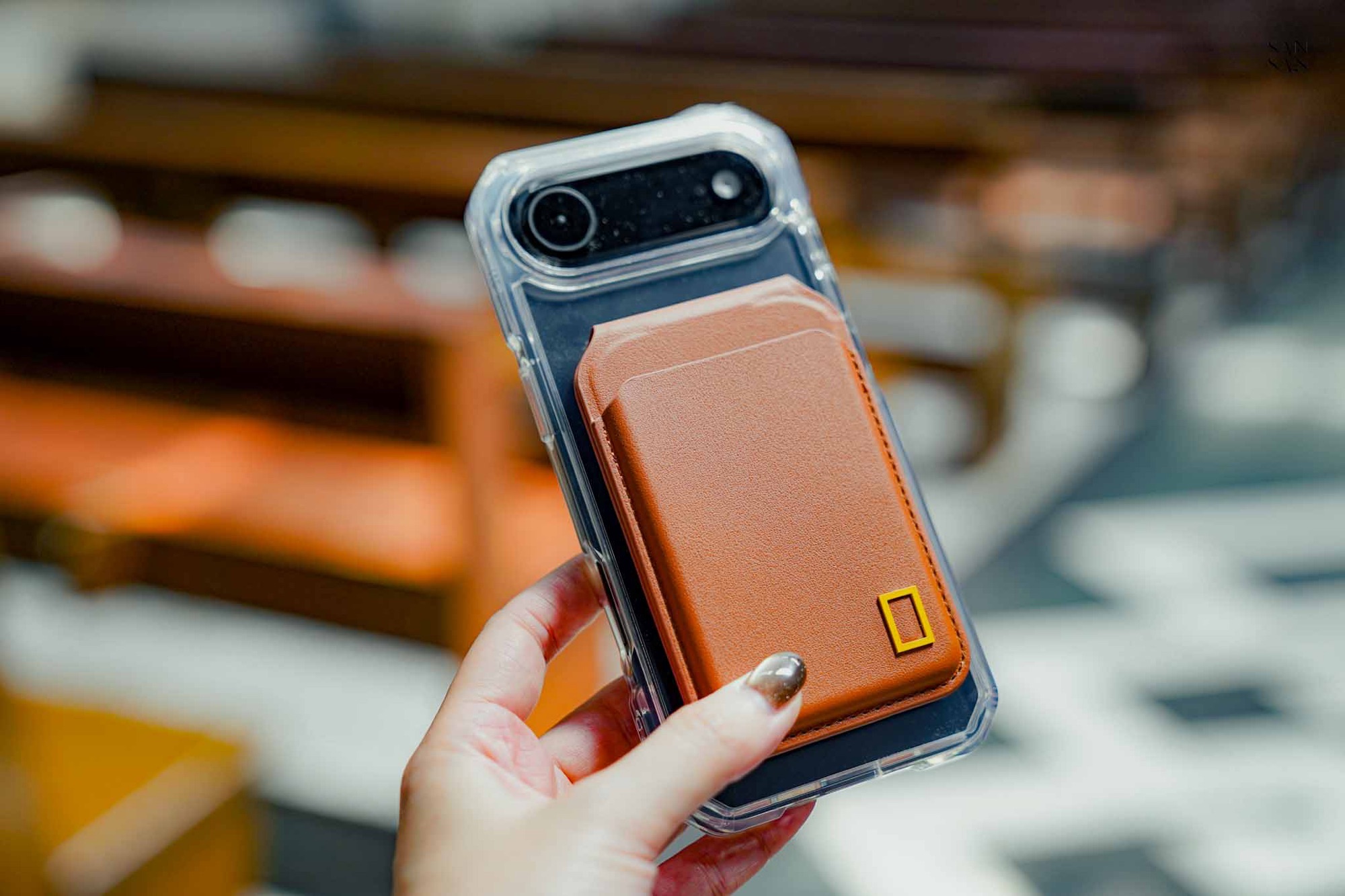 背蓋上印有 原創國家地理設計,低調卻很有個性。它的強大磁力可以自由搭配各種 MagSafe 配件,例如磁吸卡夾或無線充電器。多層結構的設計不只堅固,實際使用起來也很流暢,完全不會影響磁吸效果。