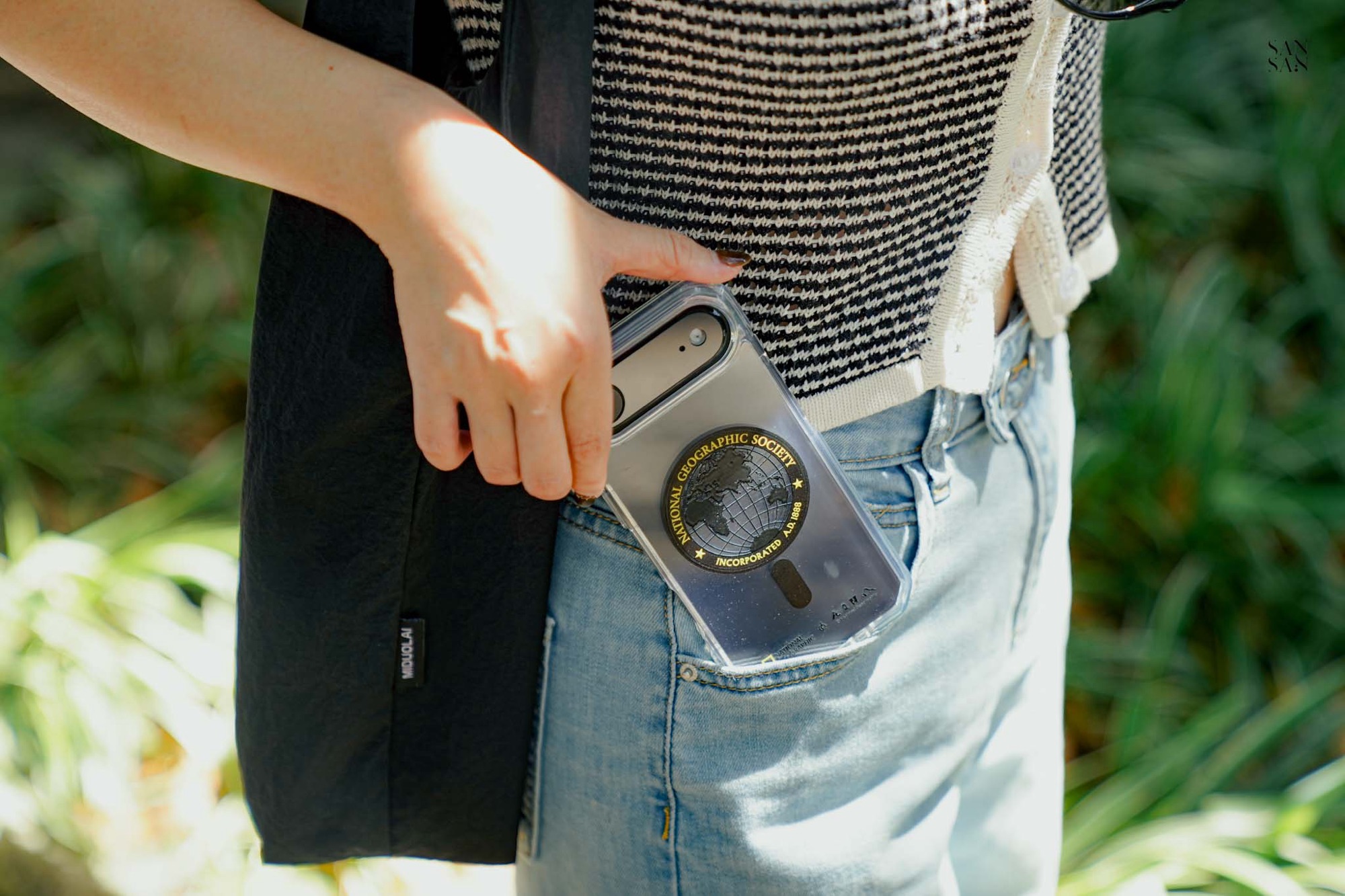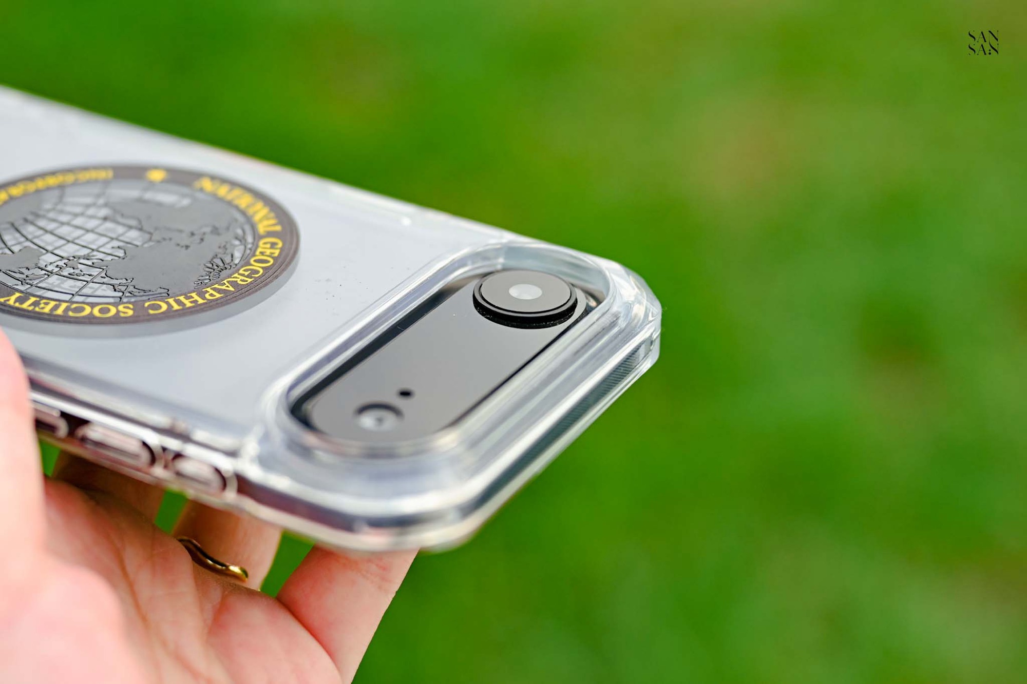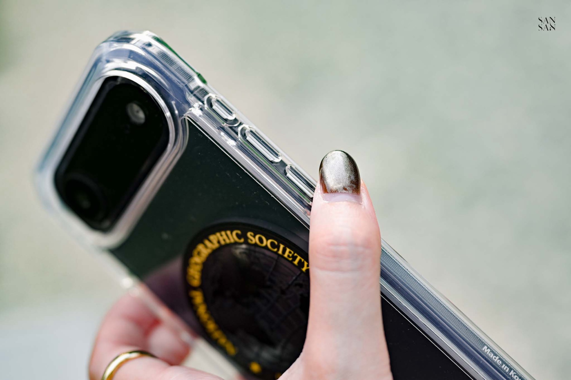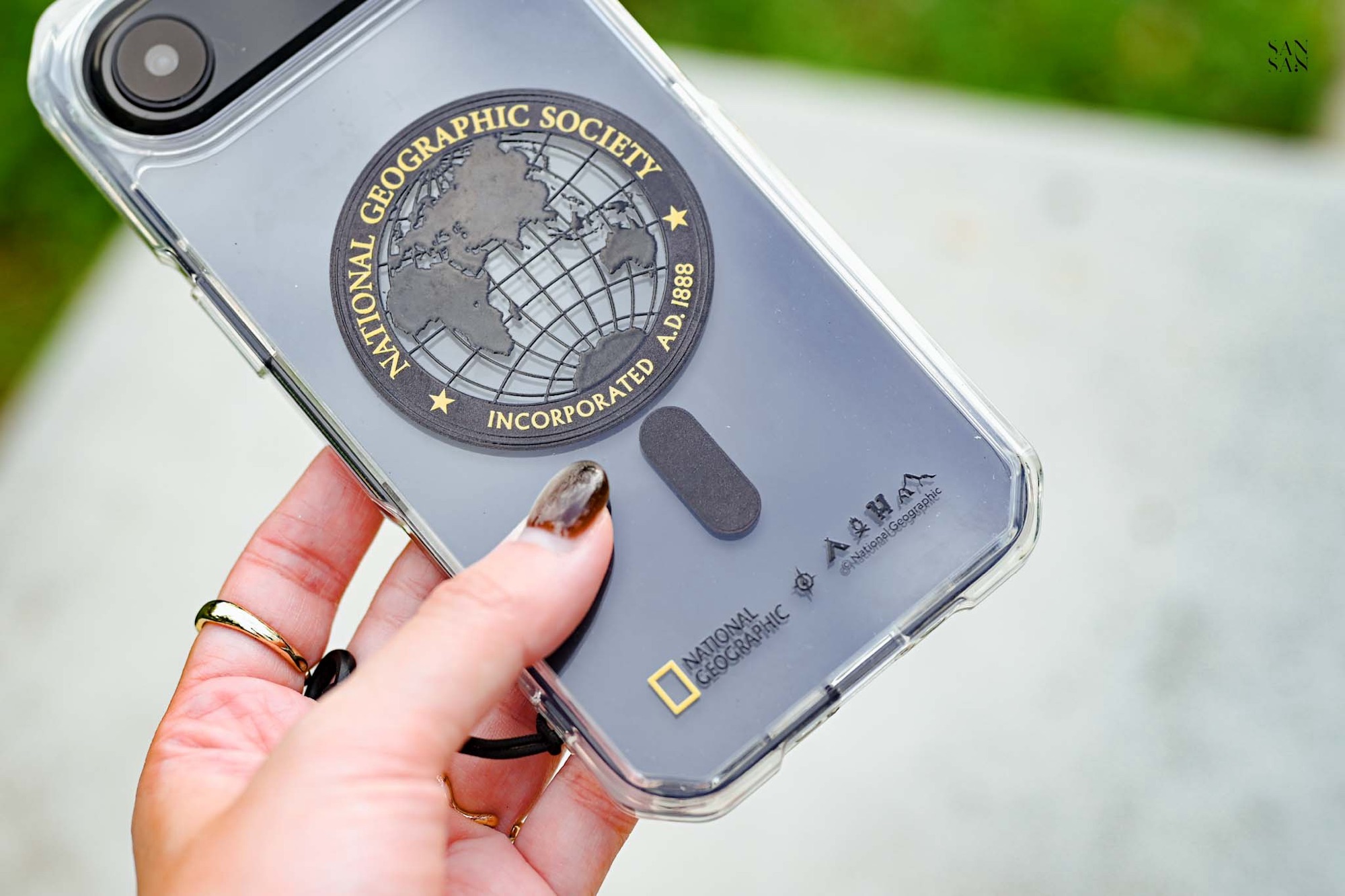 殼身側邊貼心保留了鑰匙圈孔,可以依穿搭或喜好,加上掛繩或小吊飾,展現個人風格。對於喜歡外出攝影的sansan來說,手機掛繩是最方便的我雙手持相機拍照的法寶。