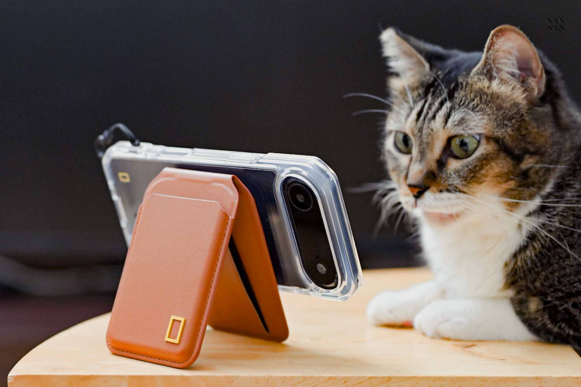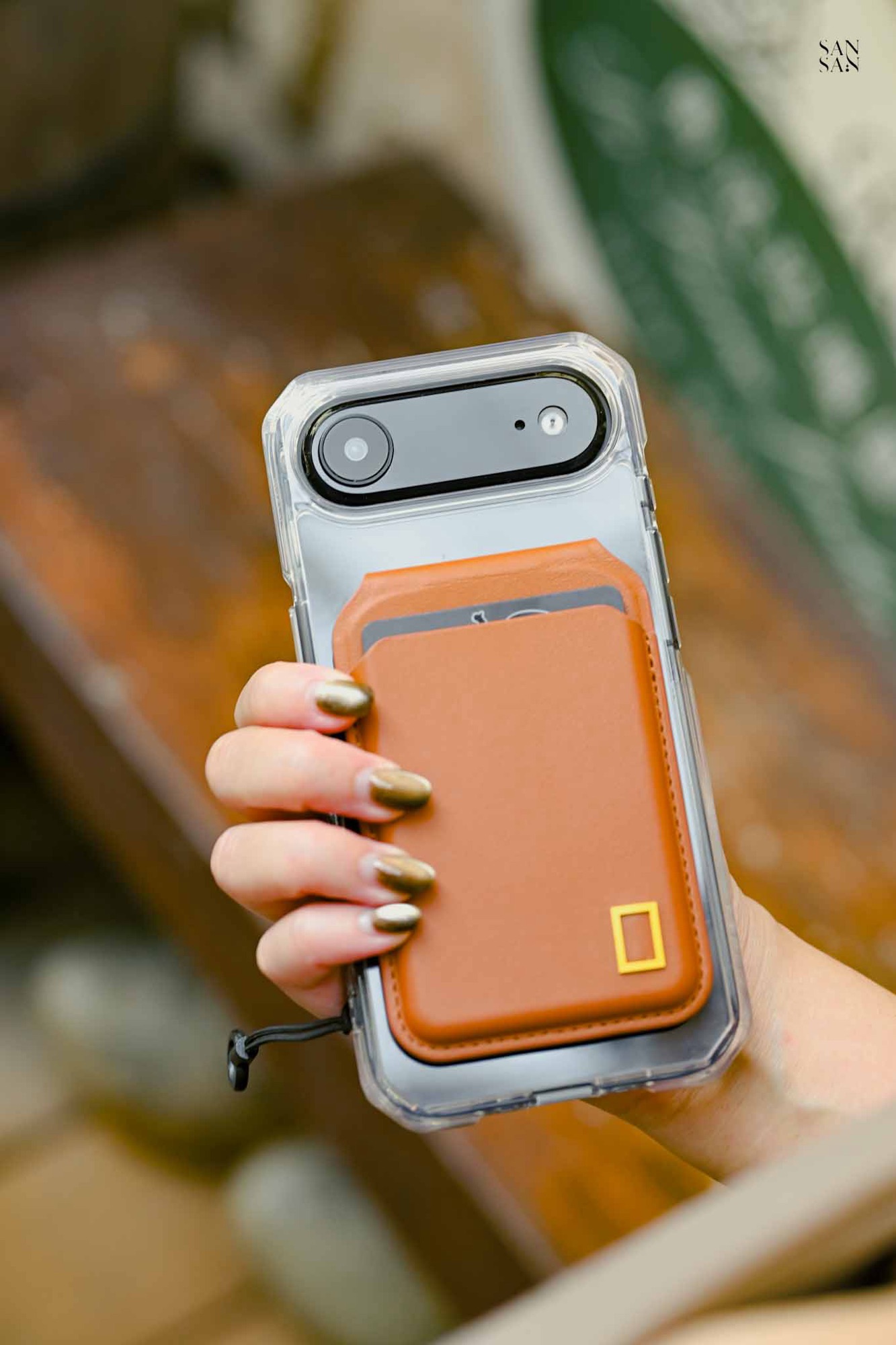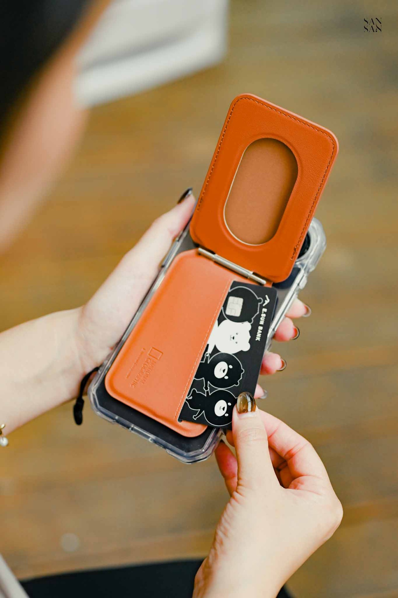 外出時sansan很常只帶手機用行動支付,不喜歡帶著錢包,這款 磁吸卡夾支架 就很好的派上用場!
