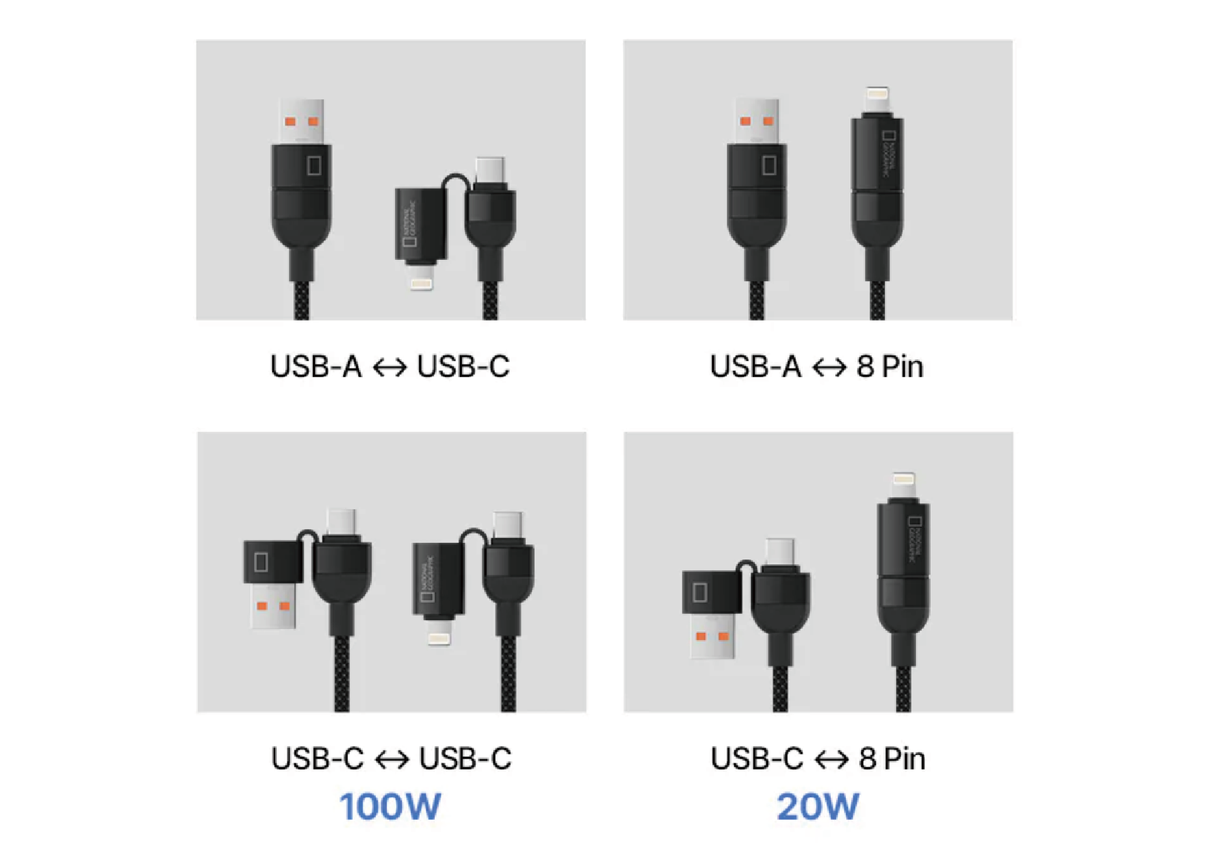 無論是 Type-C、Lightning、Micro-USB,還是雙 Type-C 的使用情境,都能隨插即用。出門時只需要帶這一條線,就能同時解決手機、平板、行動電源或Airpods等的充電需求,PD 100W 高功率快充,效率滿分。