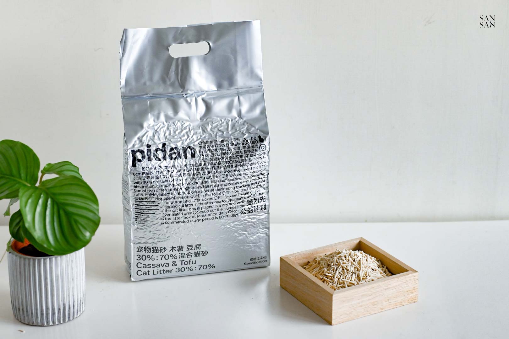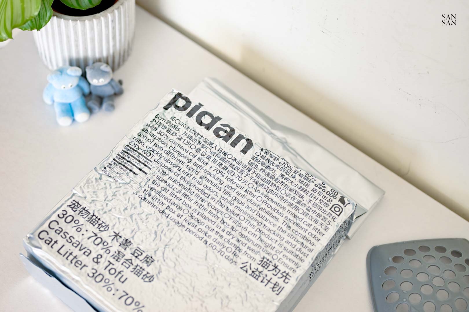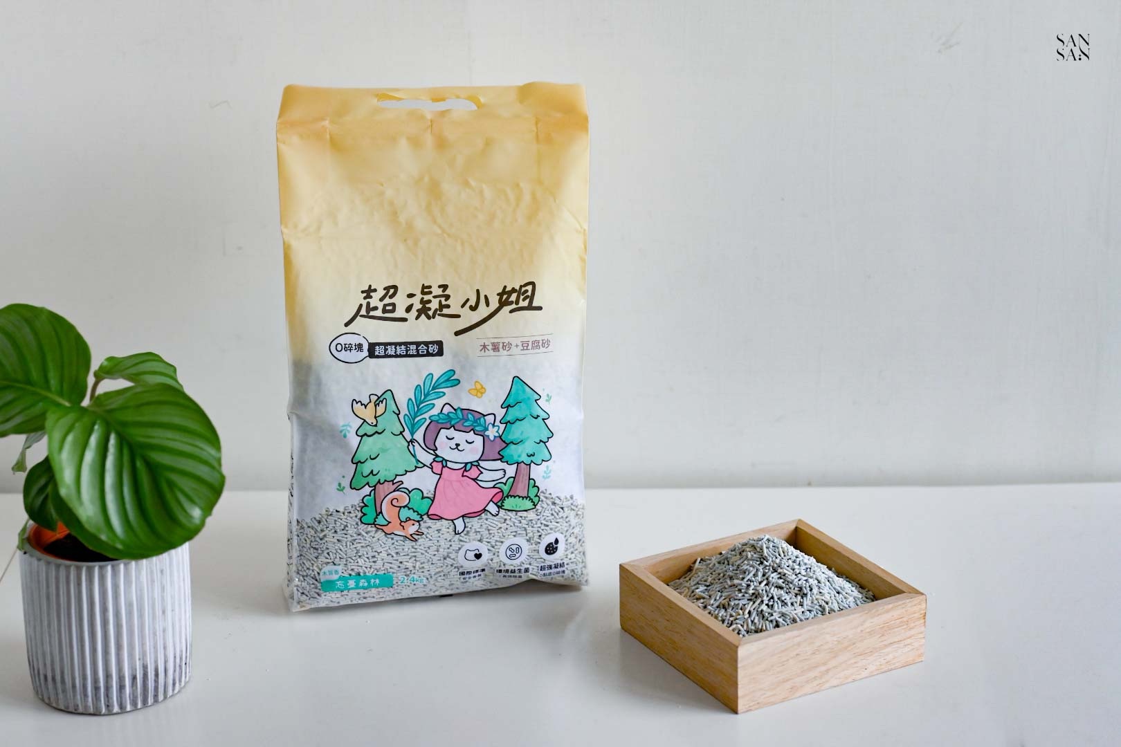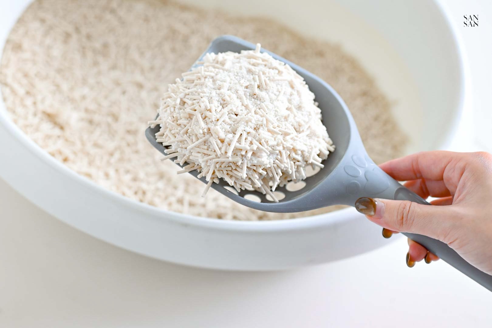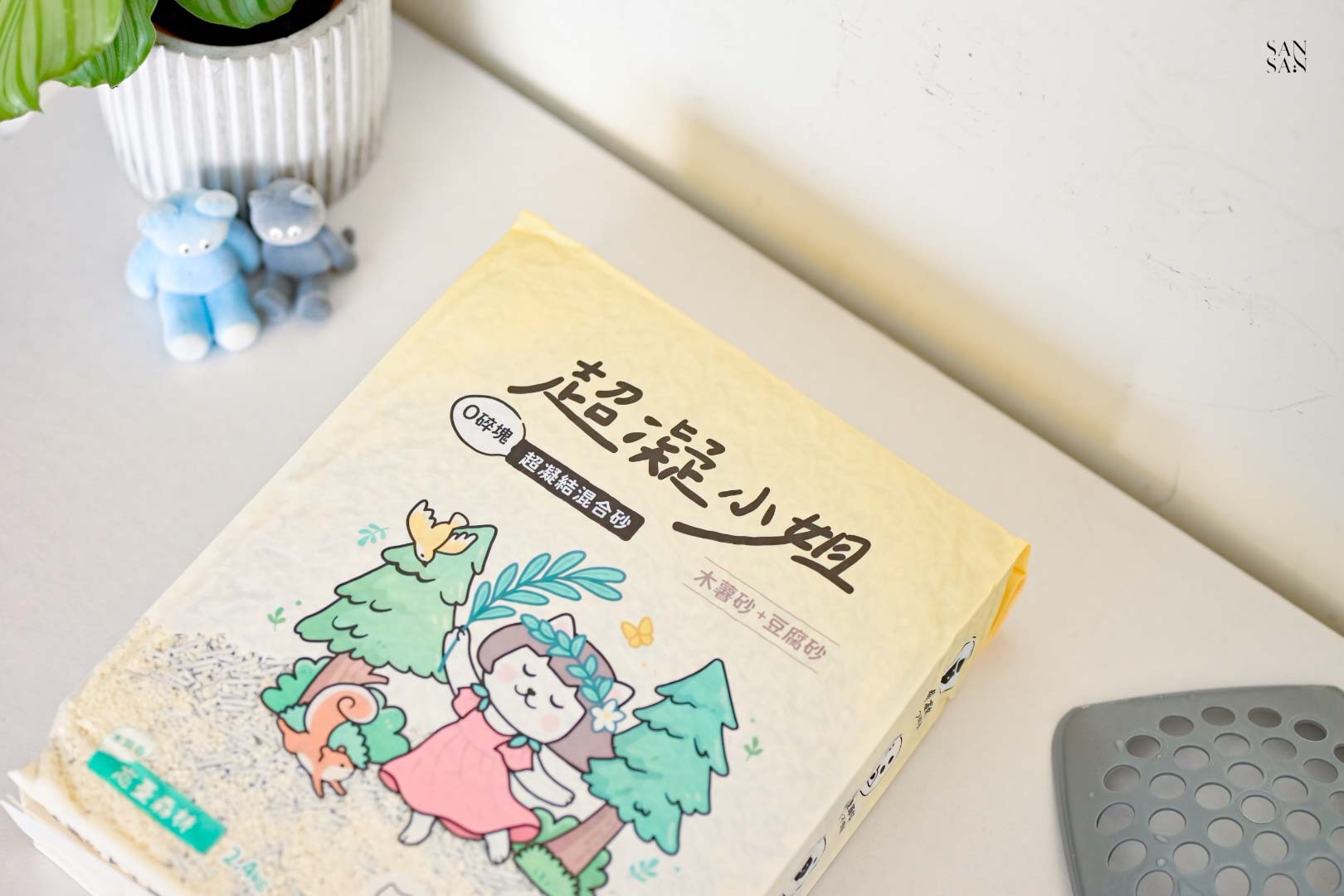 許多使用木薯砂的網友會提到:落砂好嚴重、會有蚊蟲等問題,而這次sansan選擇的「木薯豆腐砂」則是用混合的設計,解決並放大木薯砂與豆腐砂各自的優缺點!
