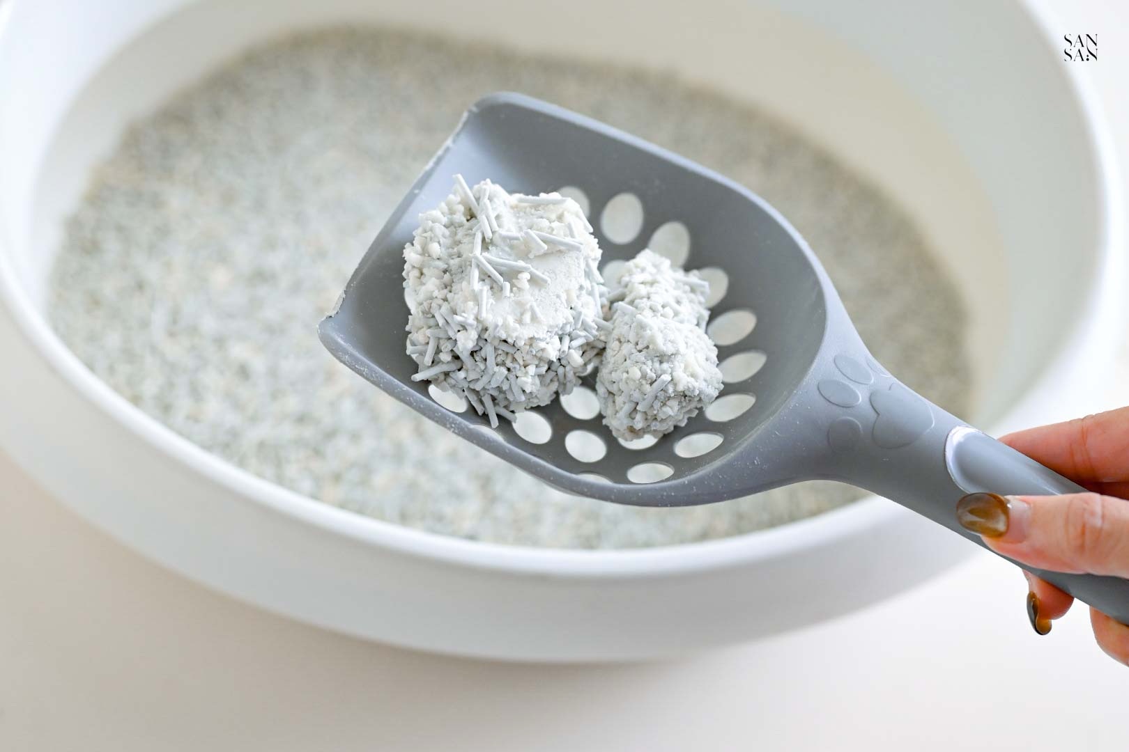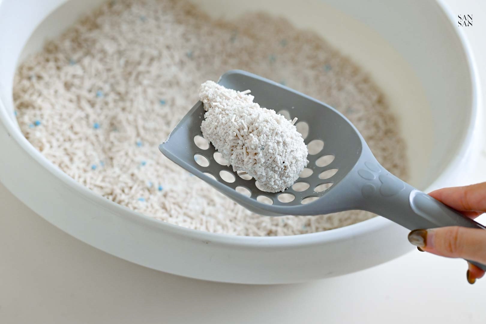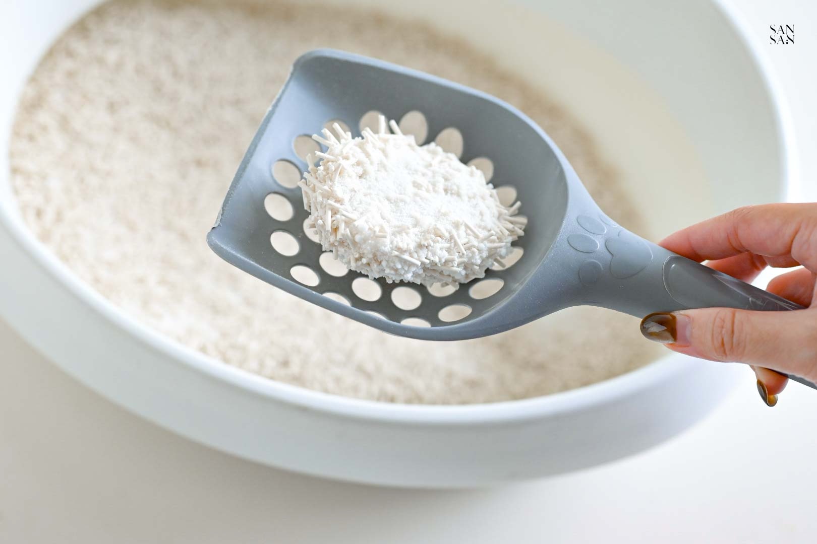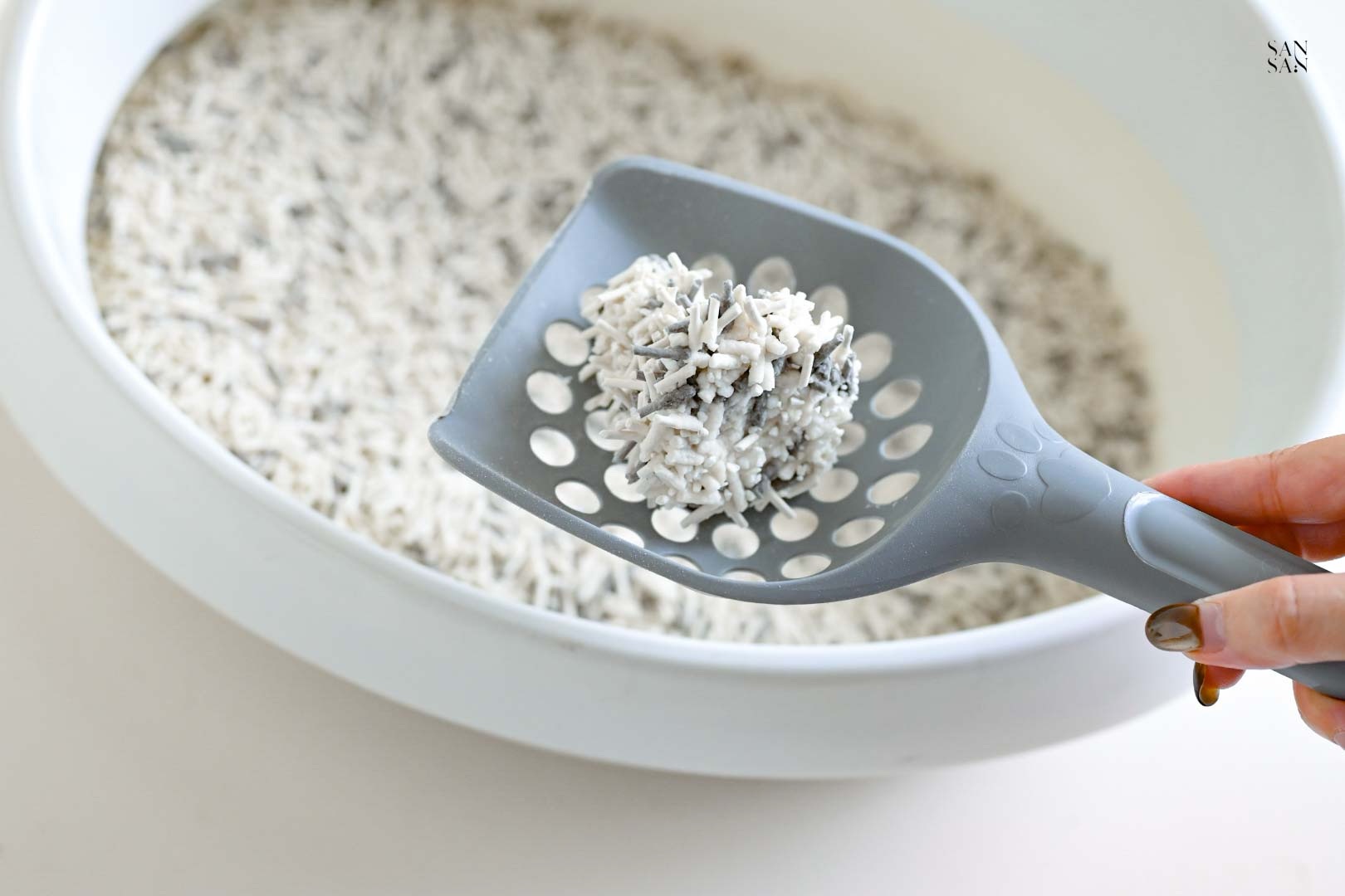 許多使用木薯砂的網友會提到:落砂好嚴重、會有蚊蟲等問題,而這次sansan選擇的「木薯豆腐砂」則是用混合的設計,解決並放大木薯砂與豆腐砂各自的優缺點!