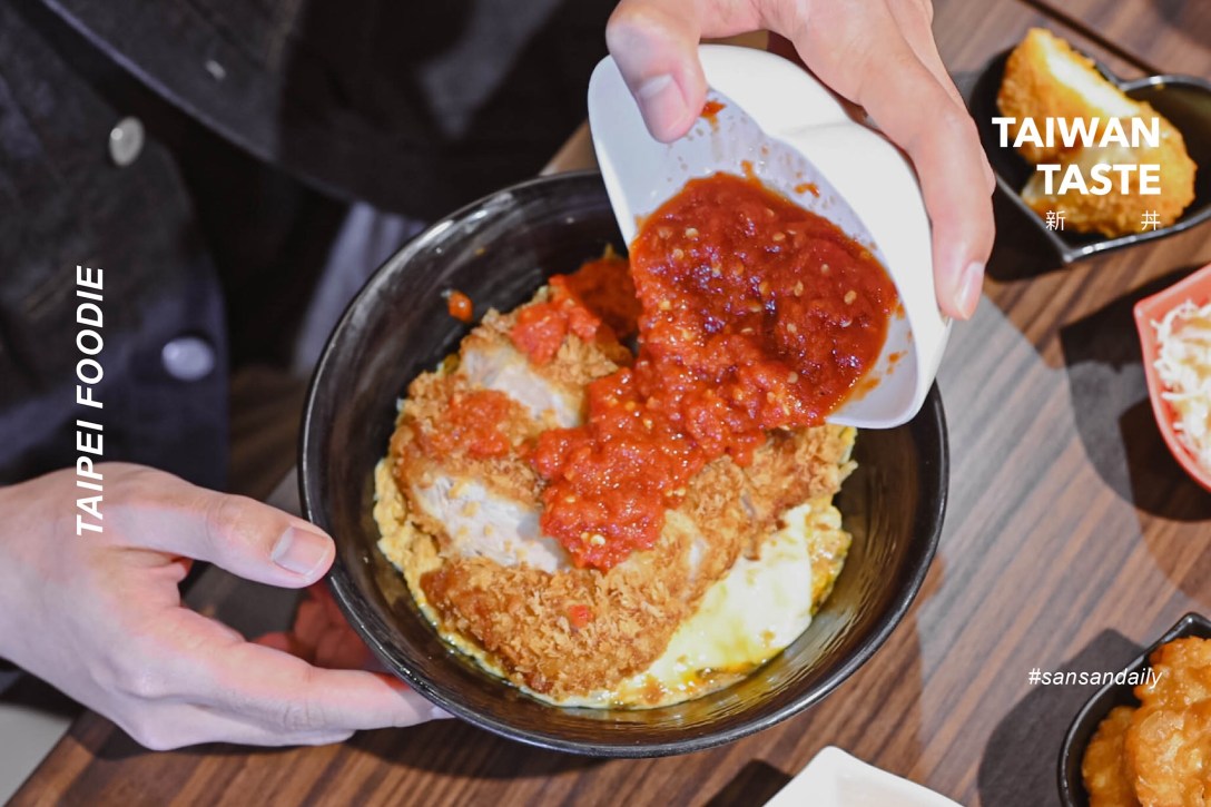 新丼全新推出「厚切豬排煉獄丼」火燒燒的辣度中帶點酸甜風味、層次疊加 一口接一口的限定美味 中山站美食|sansan吃台北